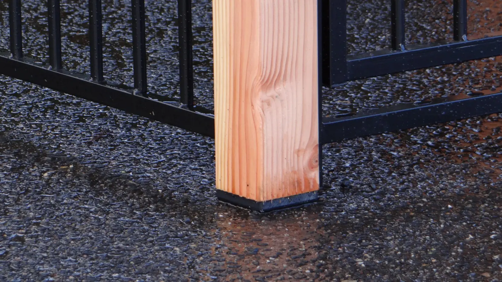 - Die Holzpfosten des Zwingers (88x88mm) sind mit Kunststofffüßen ausgestattet