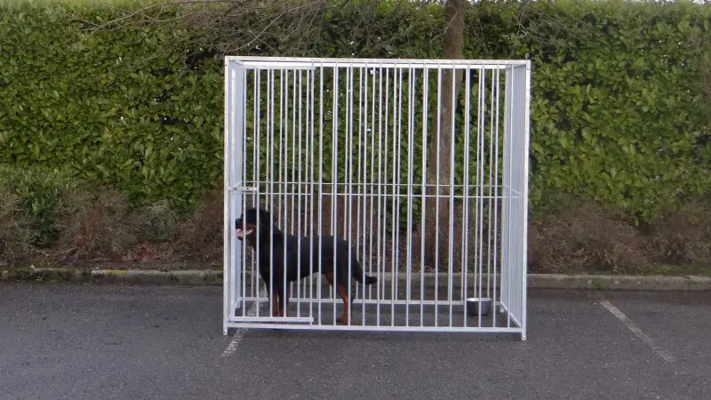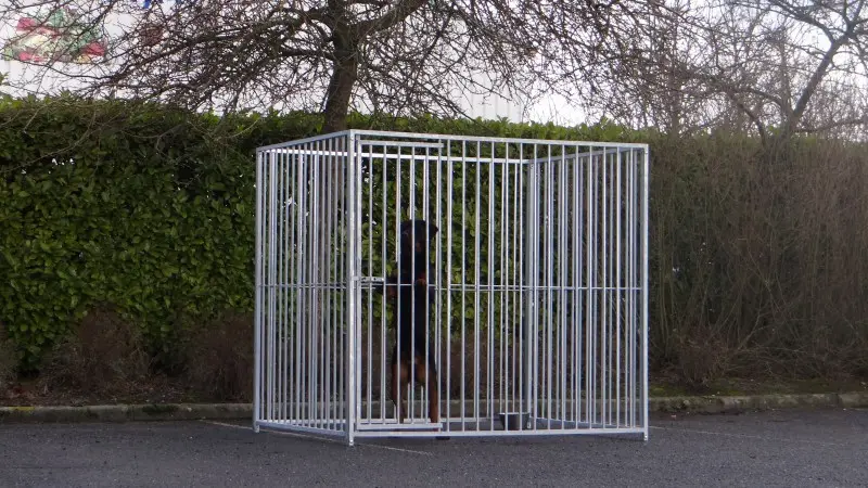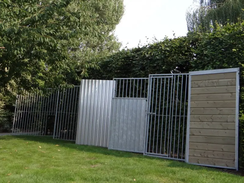 Galvanisierte Hundezwinger von 2x1,5m. Der Hundezwinger besteht aus 2 Zwingerpaneele von 2m und 2 Zwingerpaneele von 1,5m, davon 1 Paneel mit Tür.