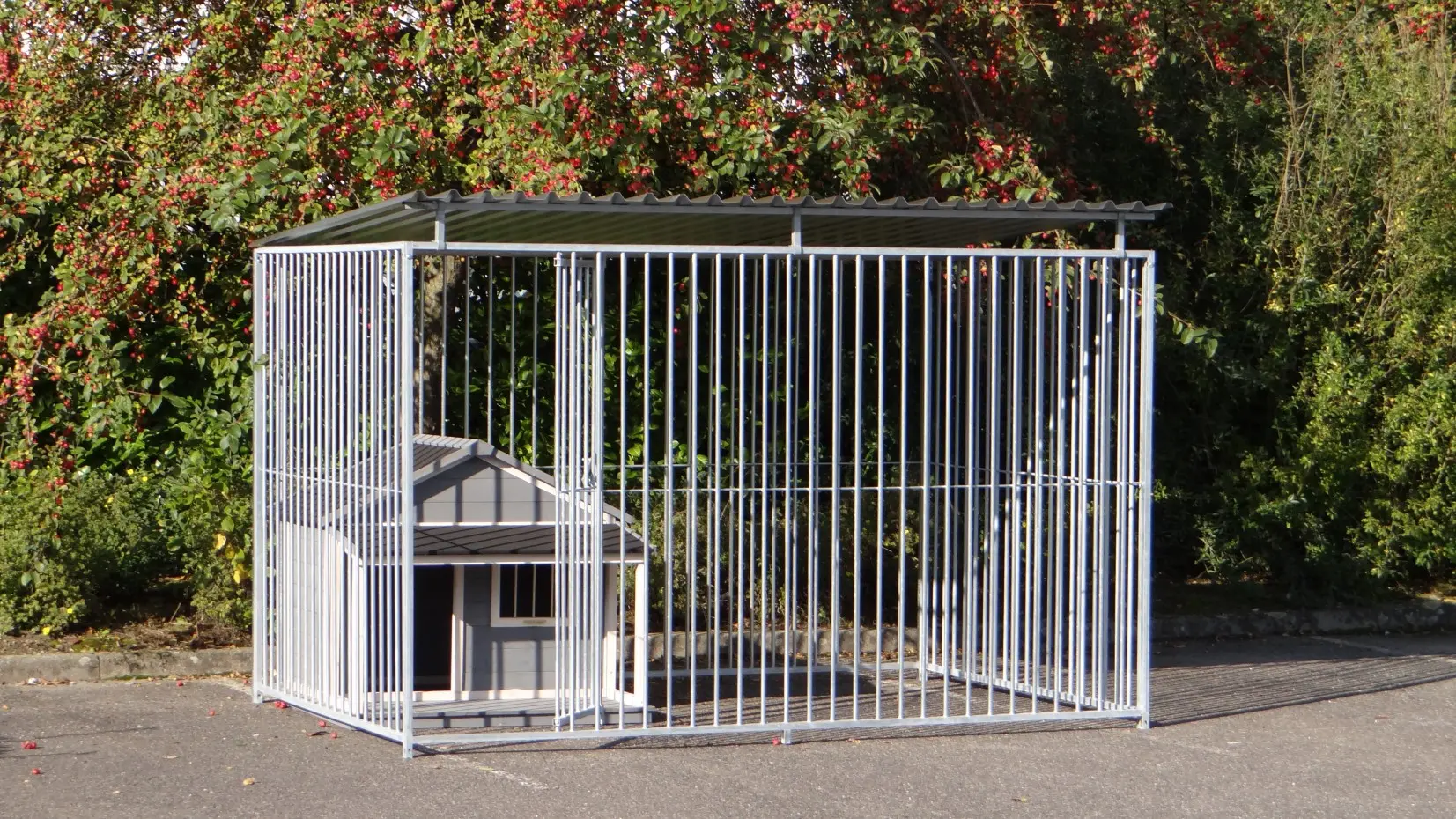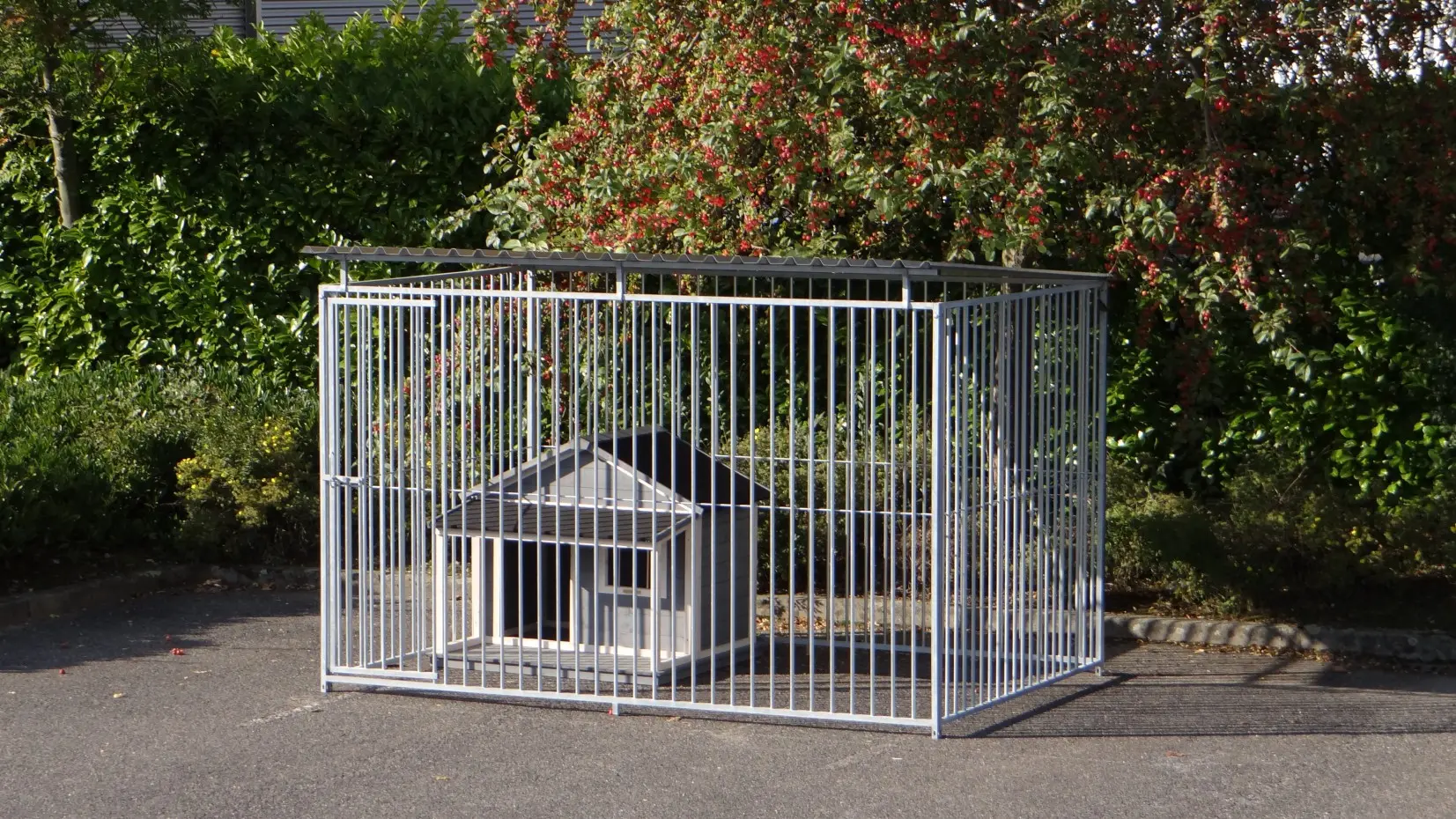 Dieser stärker, verzinkter Hundezwinger mit Hundehütte Wooff ist ein sehr schönes Gehege für Ihren mittelgrossen Hund! Dieser Zwinger besteht aus 4 Zwingerpaneelen von 1,5 M und 2 Zwingerpaneelen von 2 M. für die Seitenwänden. Dieser Zwinger können wir fast immer direkt aus Stock liefern!