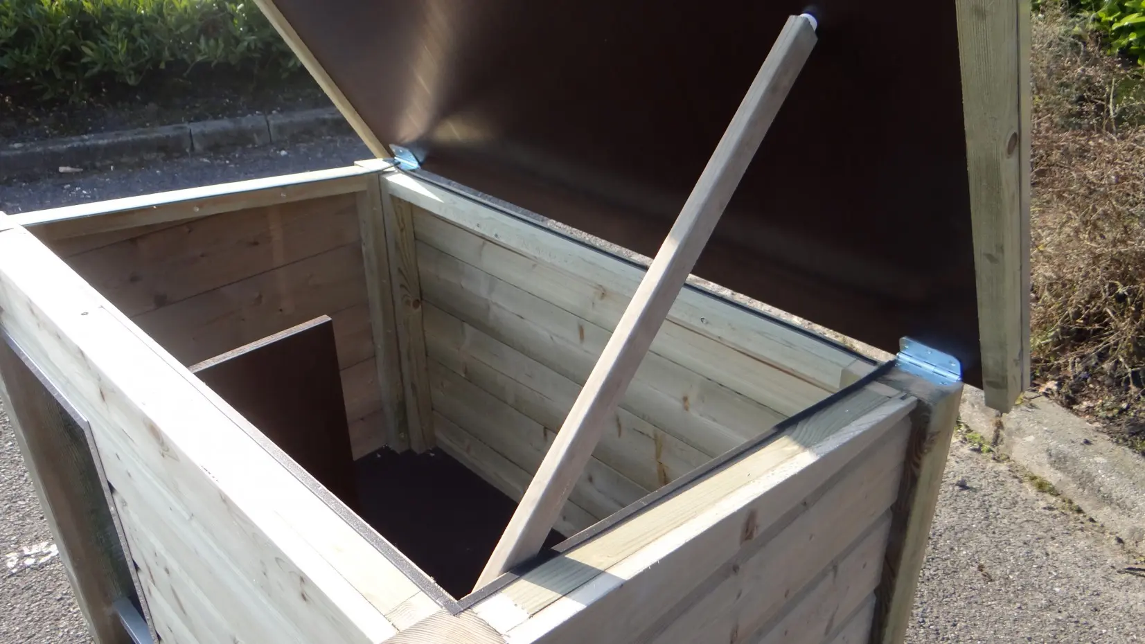 - Ungeschützte Holzkanten können mit Aluminiumstreifen versehen werden, um das Nagen zu verhindern. Sie können dies per E-Mail anfordern. Der Preis beträgt € 9,00 pro Meter (inkl. Montage).