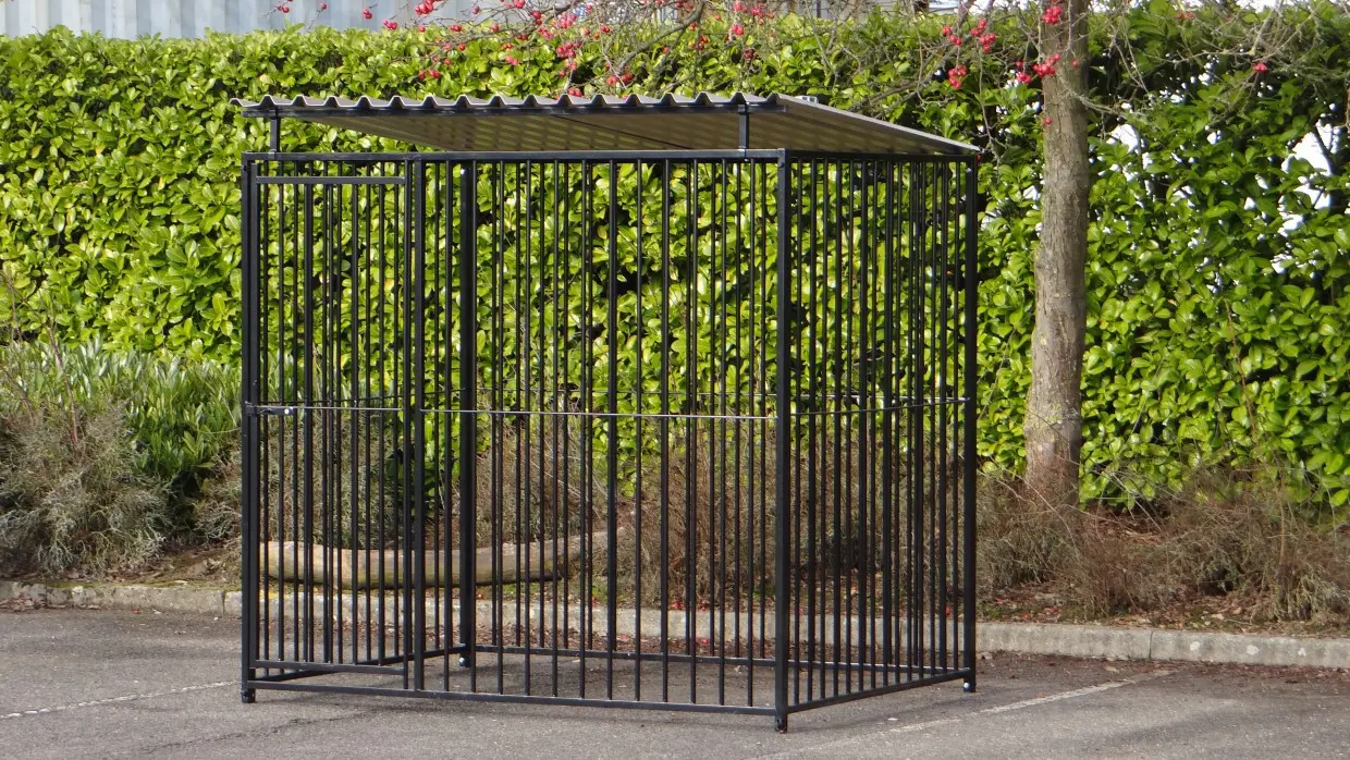 Das schwarzes Hundezwinger von 2 bis 1,5 m mit Dach ist ein sehr schönes Auslauf für Hunde! Das Dach schützt Ihr Hund gegen die regen. Diese Zwinger sind gleich verfügbar!