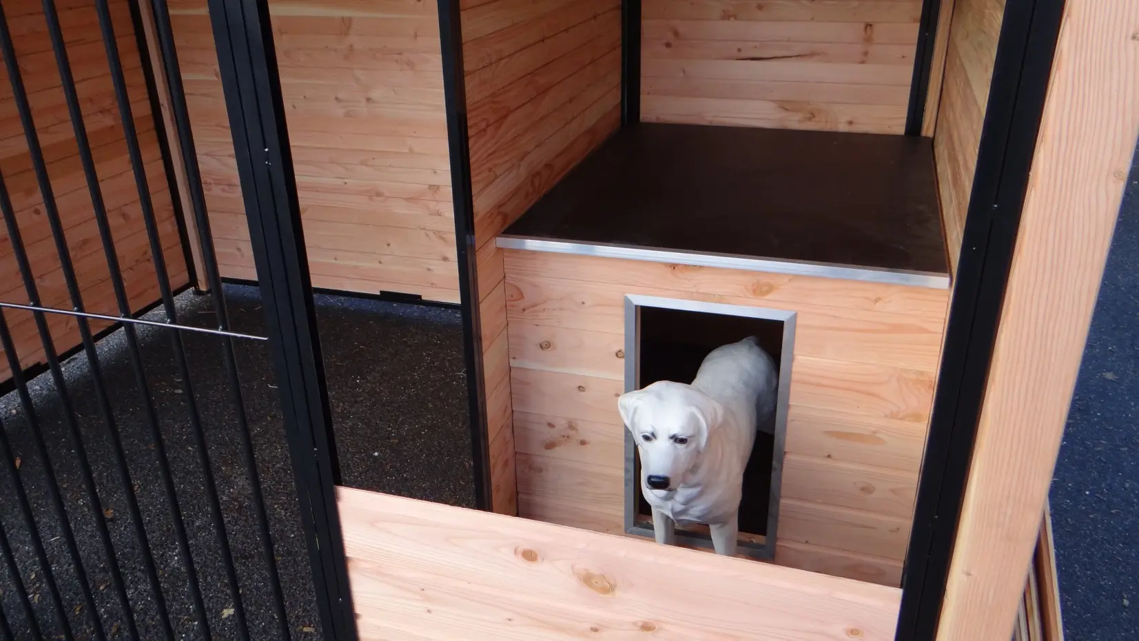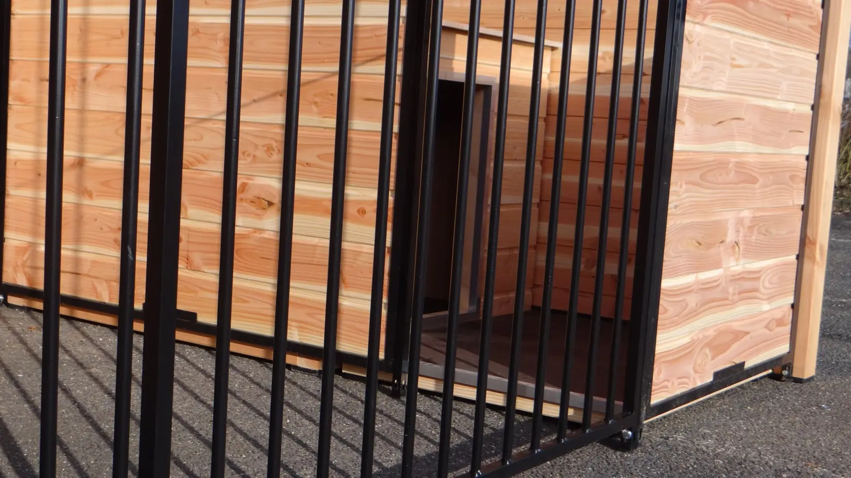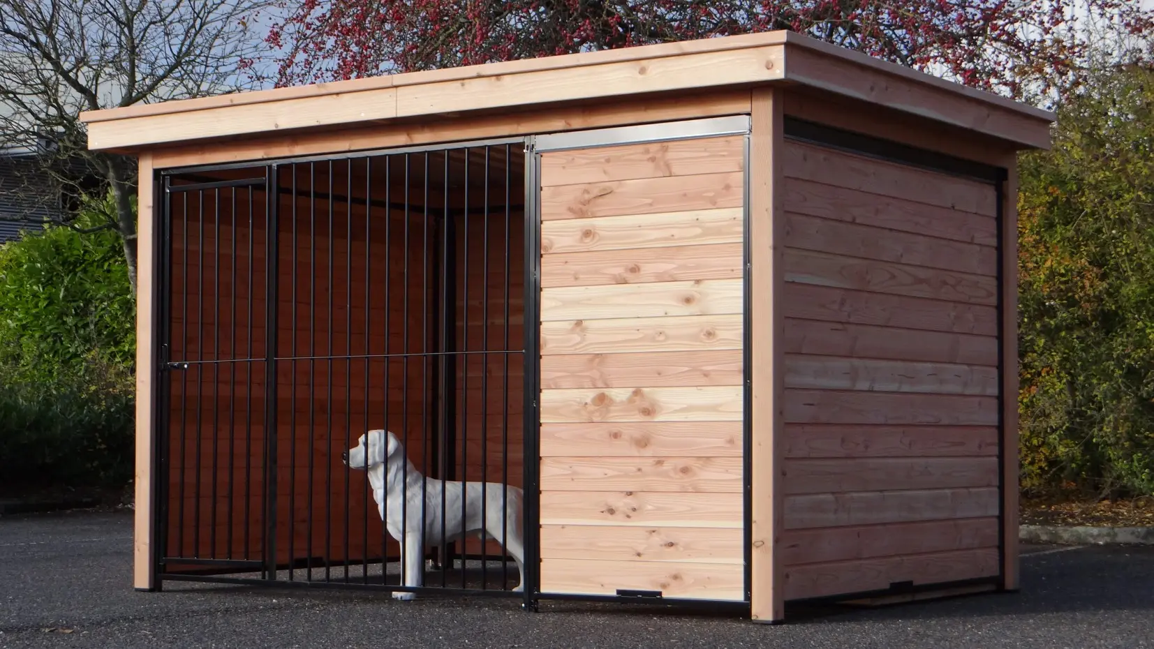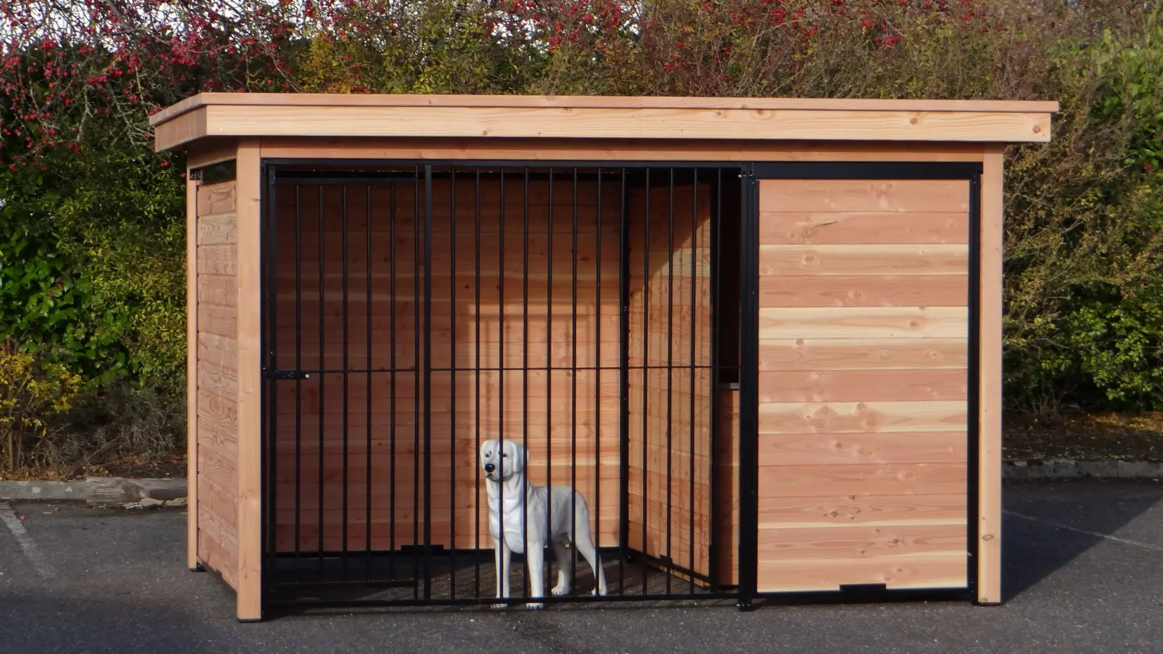 Die schwarze Hundenkennel Forz mit Holzrahmen, luxuriösem Dachsystem und Douglasienholz ist eine wunderschöne Kennelanlage mit optimalem Schutz für Ihren Hund rundum. Hinter der Windschutzwand befindet sich ein isoliertes Nachthaus mit einer davorliegenden Holzterrasse. Dadurch ist die Kennel ein schönes und komplettes Set für alle Jahreszeiten. Der massive Rahmen aus Douglasienholz und das hochwertig verarbeitete Dach sorgen gemeinsam für eine fantastische Optik und machen die Kennel perfekt.