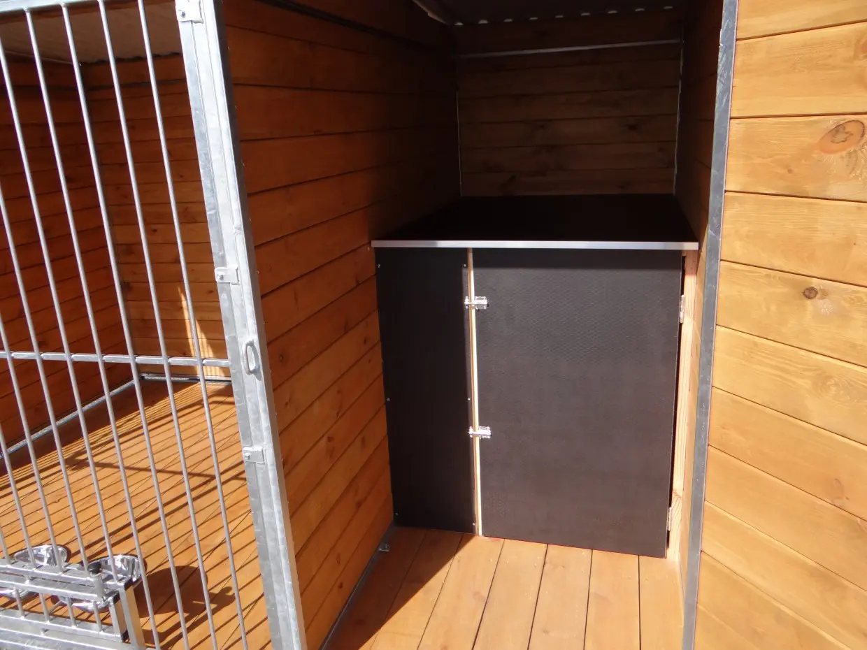 - Zwinger versehen mit drehbarer Futter und Trinkstelle von 2 x 2 L.