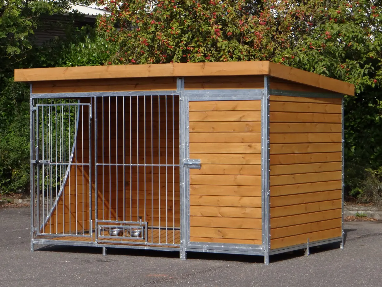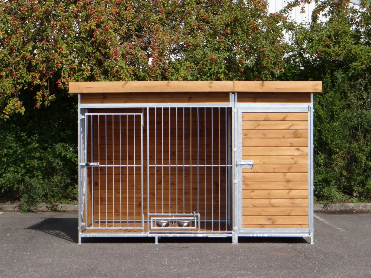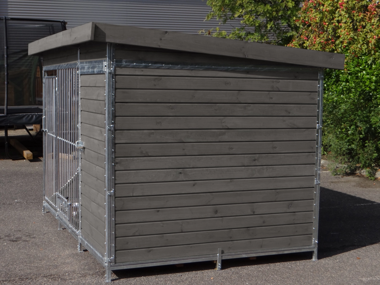 - Die Holzwände bieten Schutz gegen Wind, Niederschlag und Sonne. Dies schafft das ganze Jahr über ein besseres Klima im Zwinger.