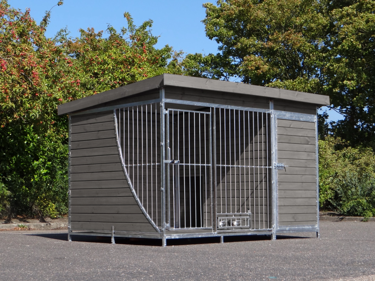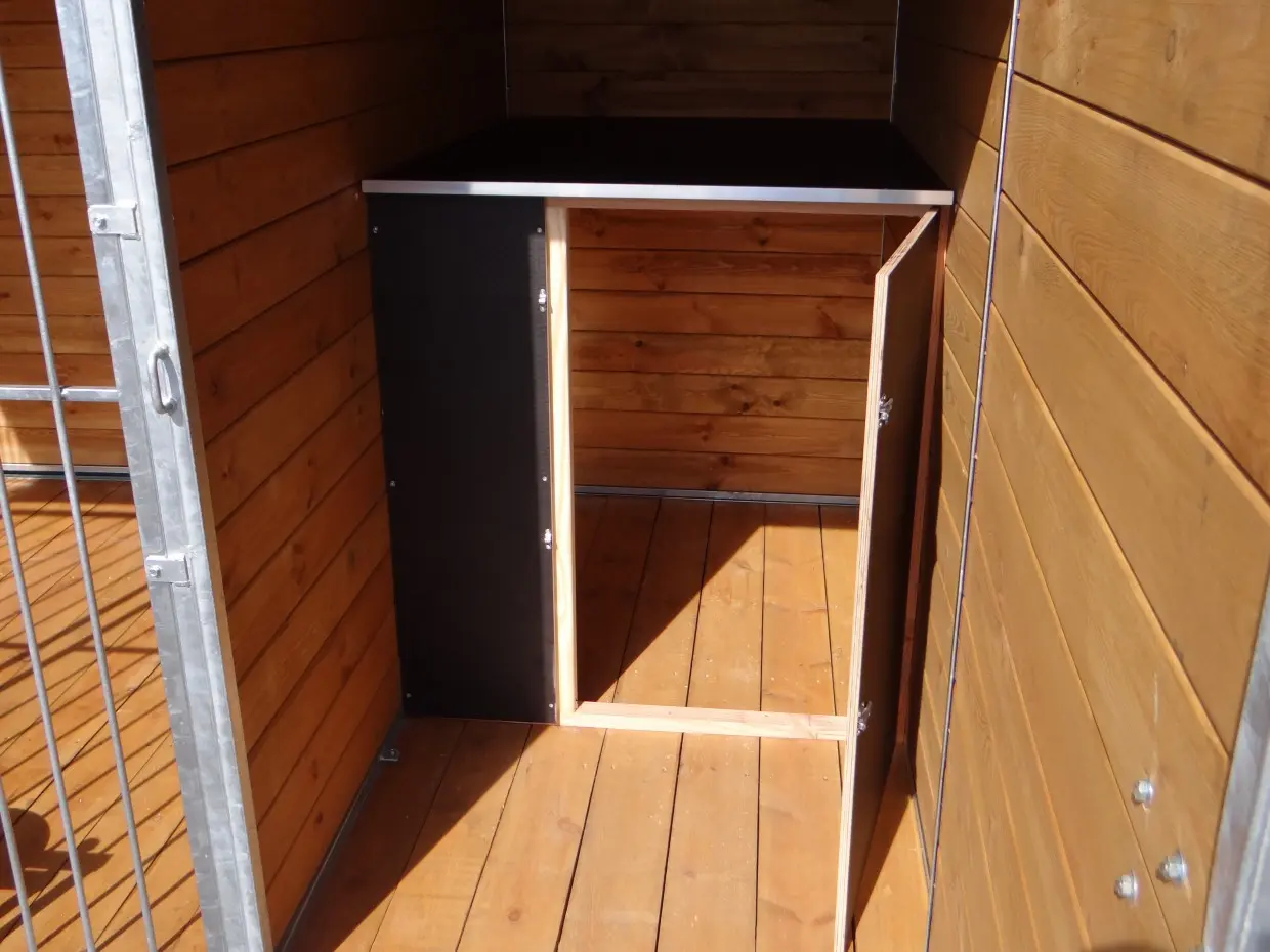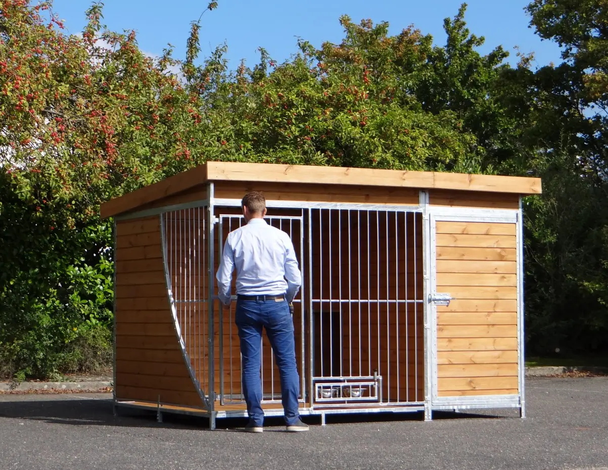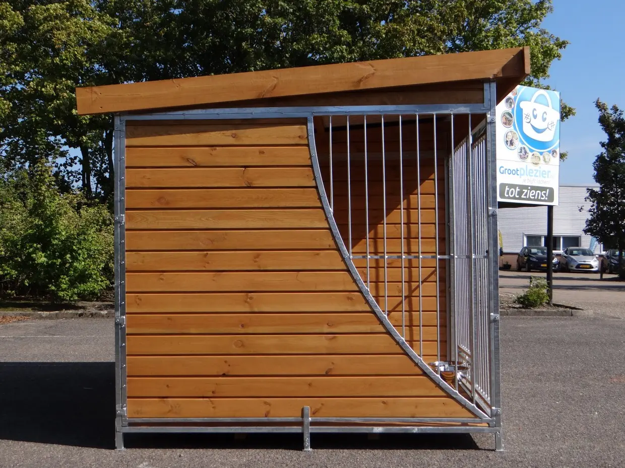 - Die Holzwände bieten Schutz gegen Wind, Niederschlag und Sonne. Dies schafft das ganze Jahr über ein besseres Klima im Zwinger.