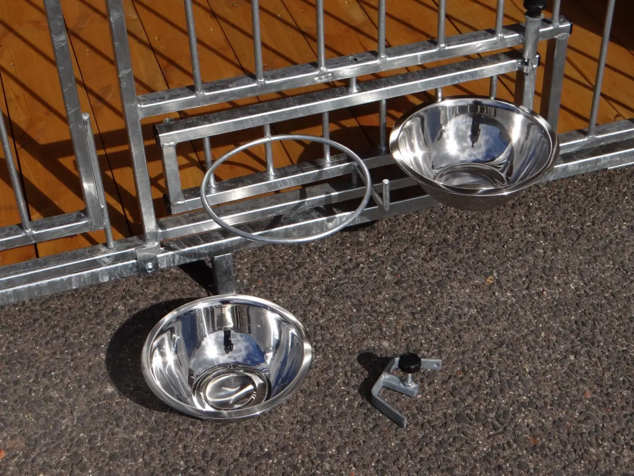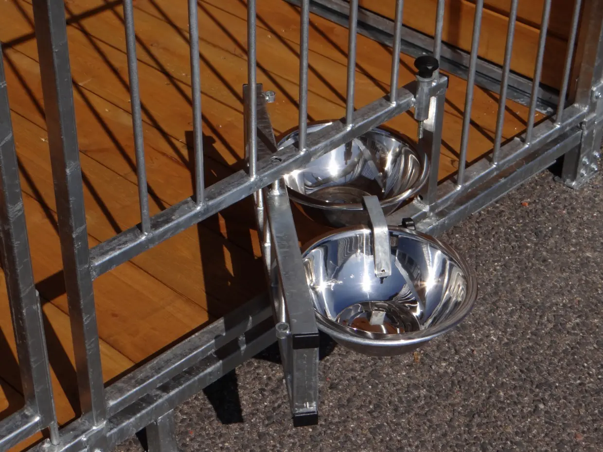 - Zwinger versehen mit drehbarer Futter und Trinkstelle von 2 x 2 L.