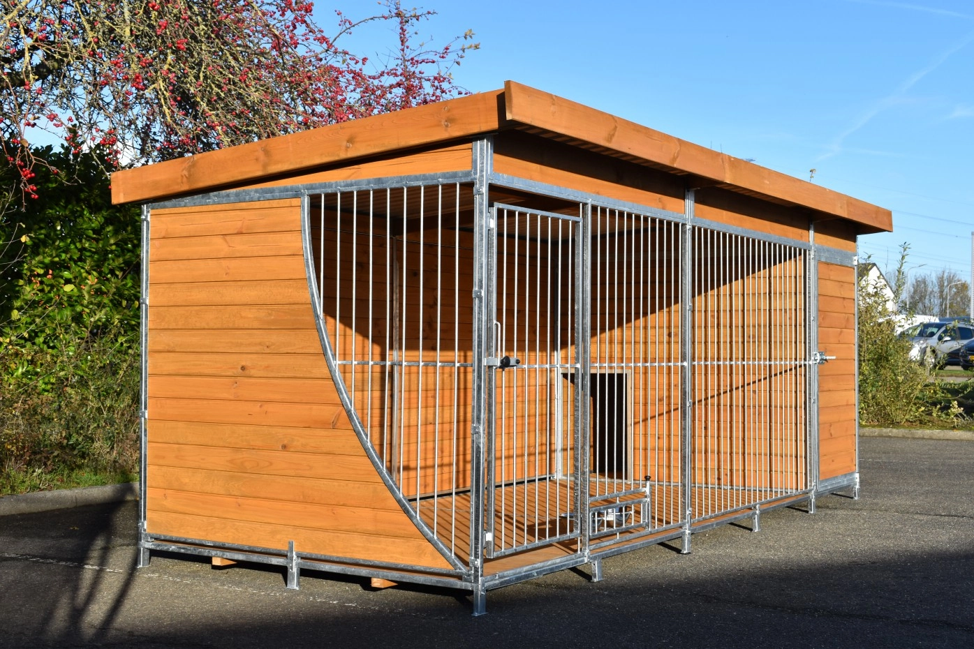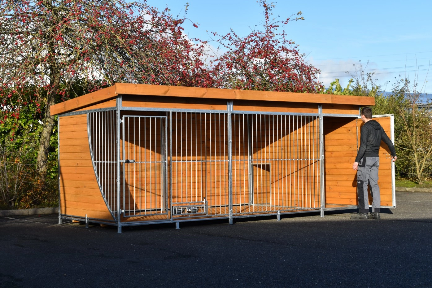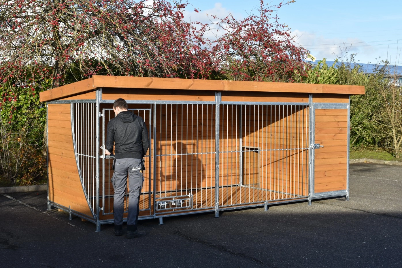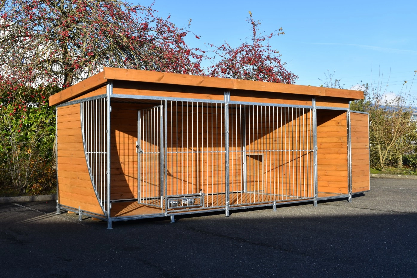 - Die Holzwände bieten Schutz gegen Wind, Niederschlag und Sonne. Dies schafft das ganze Jahr über ein besseres Klima im Zwinger.