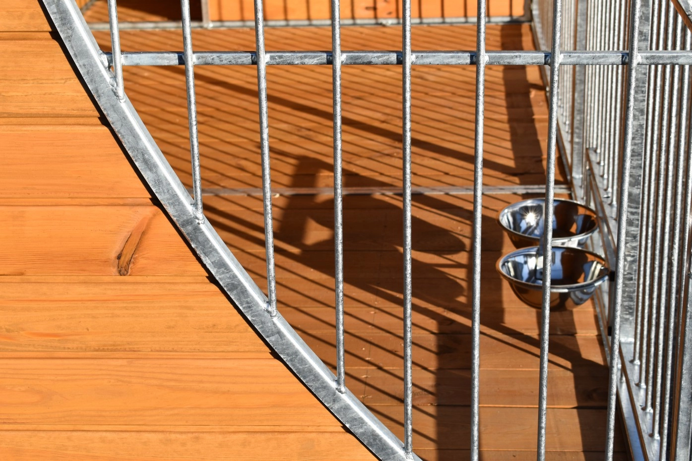 - Bei diese robuster Zwinger wird dicker Holz und Stahl verwendet. Es sorgt manchmal für ein grobe Oberfläche; einige Teile sind nicht genau quadratisch oder leicht gebogen. Im Gesamtbild fällt dies kaum auf und beeinträchtigt die Qualität nicht.