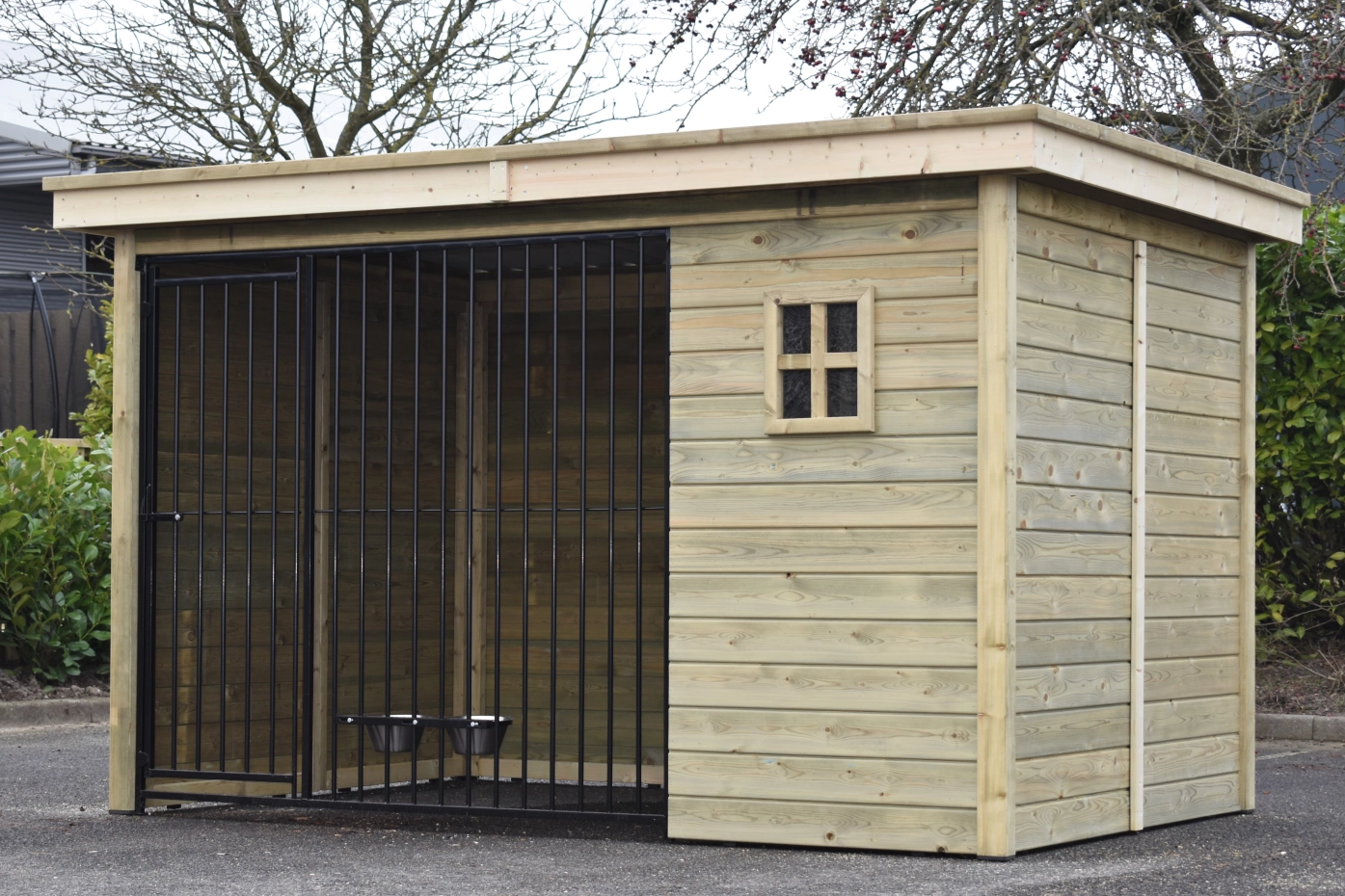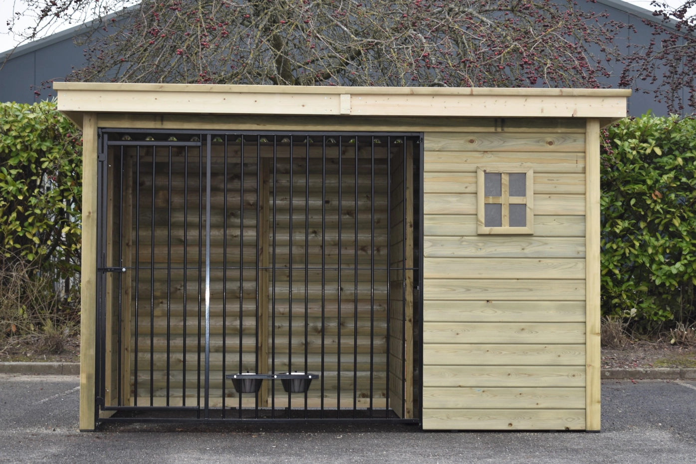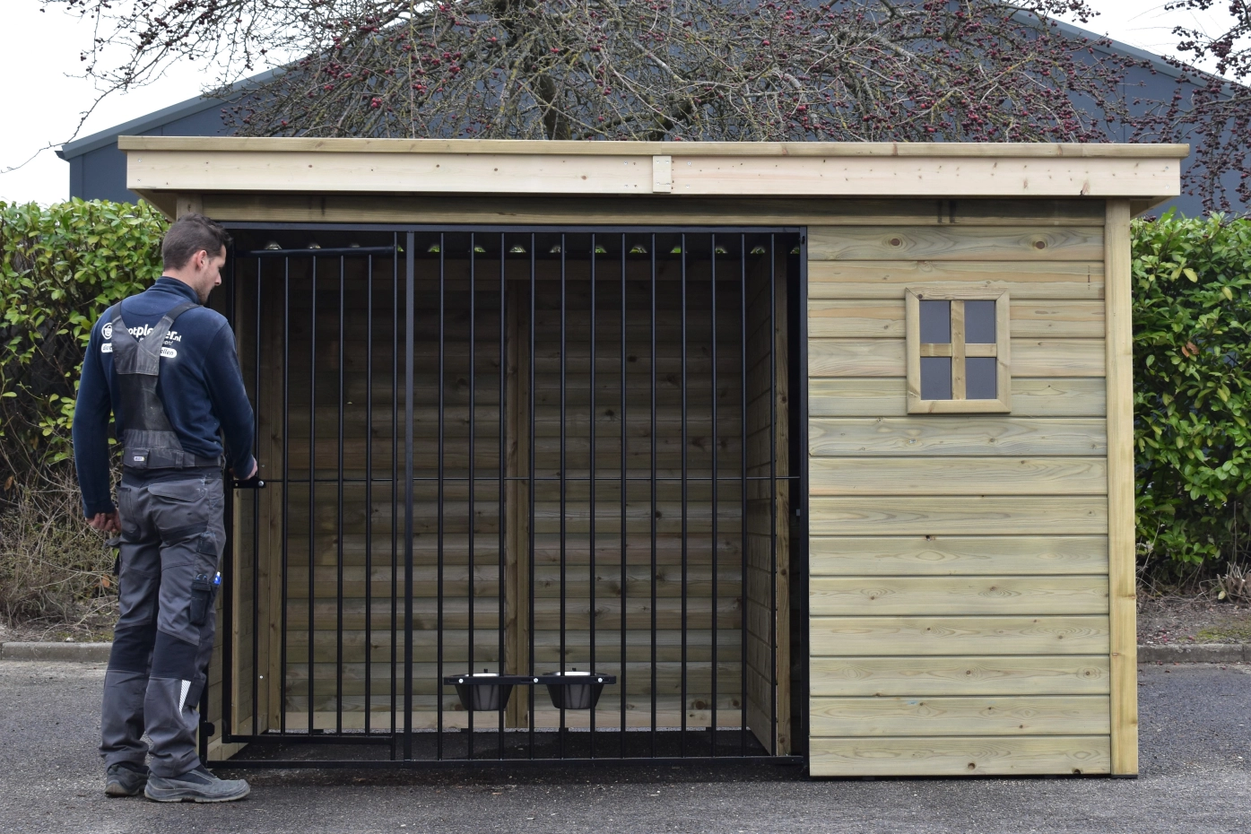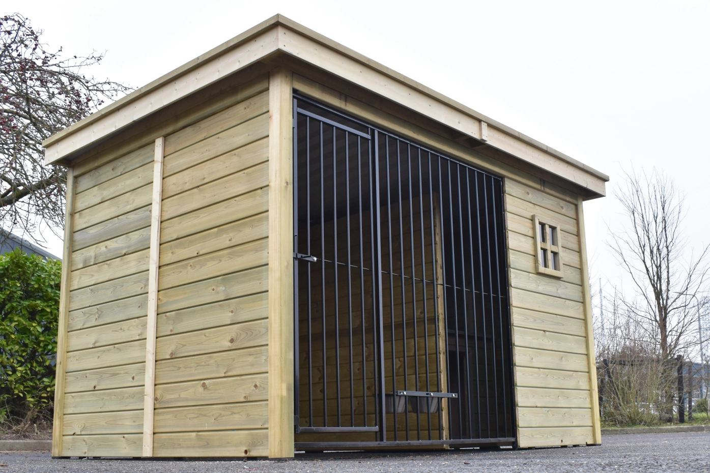 Schöner Zwinger aus imprägniertem Fichtenholz mit einem luxuriösen, isolierten Easy-Schlafhaus. Das Dach besteht aus Stahlplatten mit einer Filzschicht an der Innenseite. Diese verhindert Kondensbildung und dämpft das Geräusch von Regen. Das imprägnierte Fichtenholz ist langlebig und besonders widerstandsfähig. Dank der modularen Wände erhalten Sie einen stabilen Zwinger mit sauber und hochwertig verarbeiteten Paneelen. Das Dach ist mit einem luxuriösen Dachsystem versehen, wodurch die Platten kaum sichtbar sind. Dieser Zwinger bietet Platz für einen großen oder zwei mittelgroße Hunde.