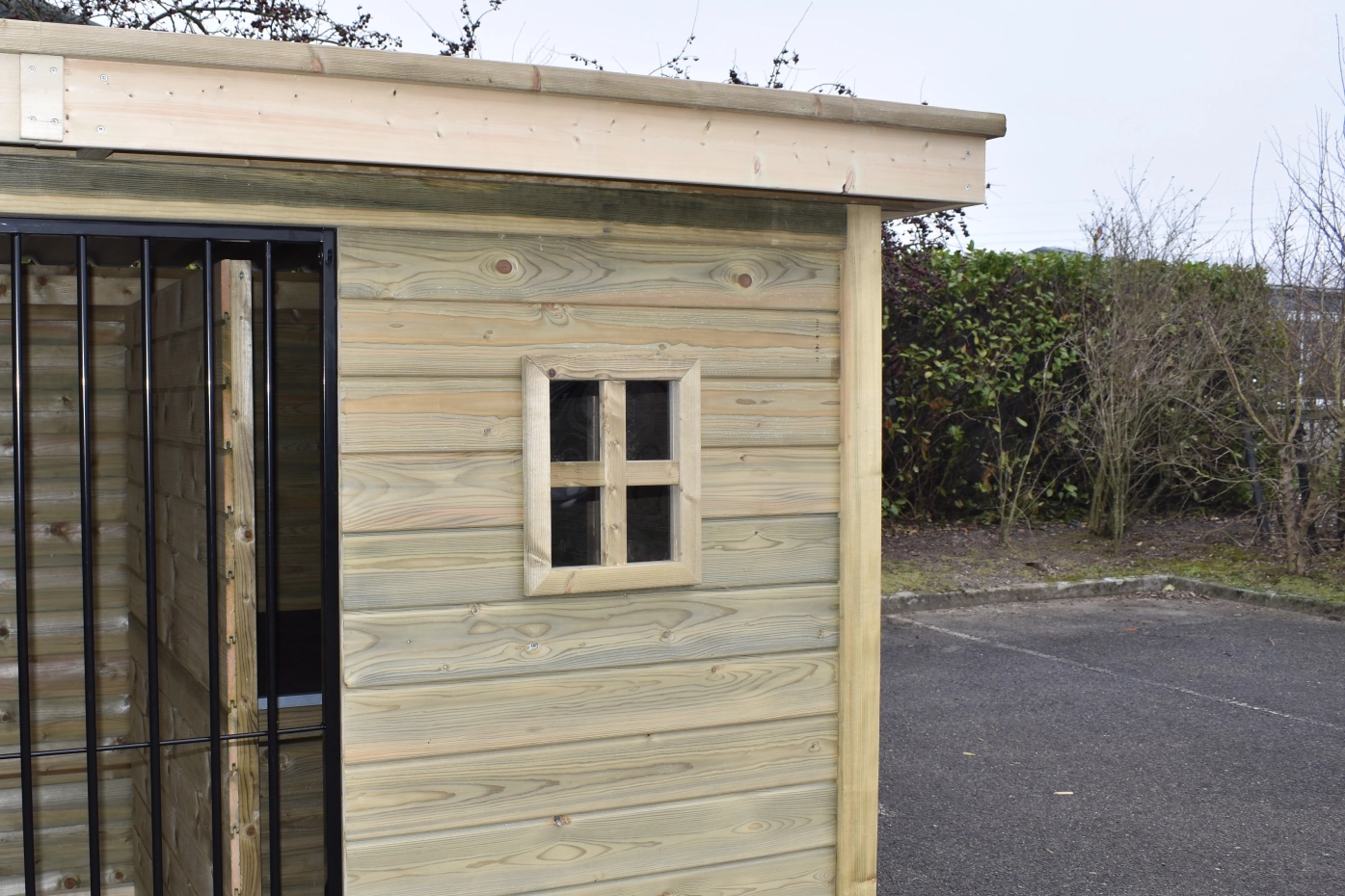 - Die Holzwände bieten Schutz gegen Wind, Niederschlag und Sonne. Dies schafft das ganze Jahr über ein besseres Klima im Zwinger.