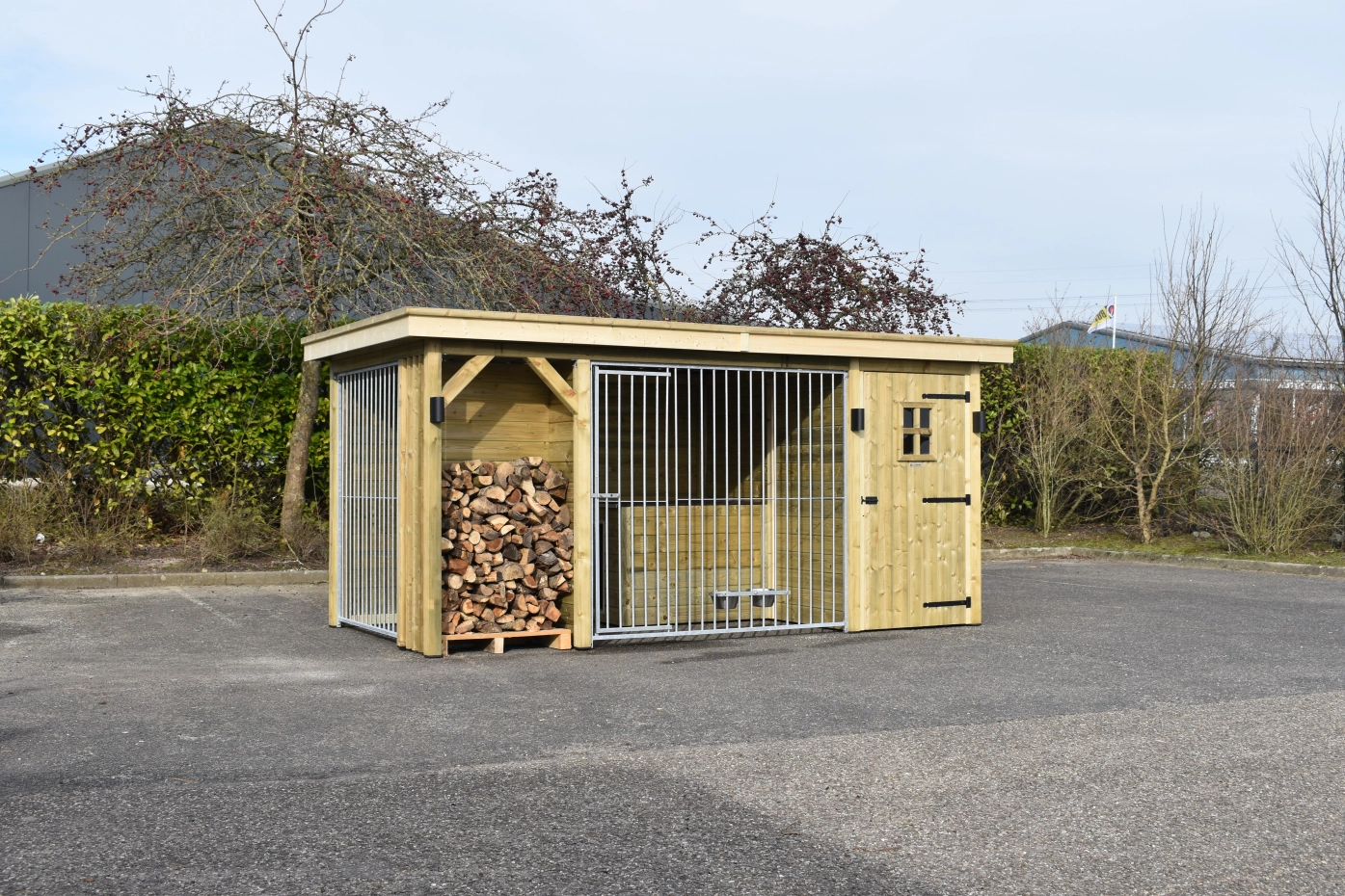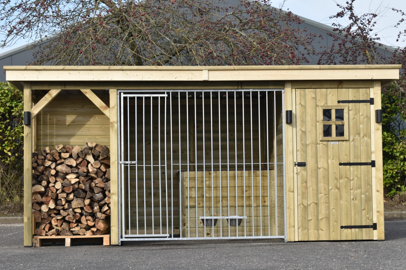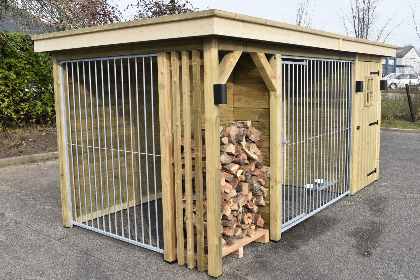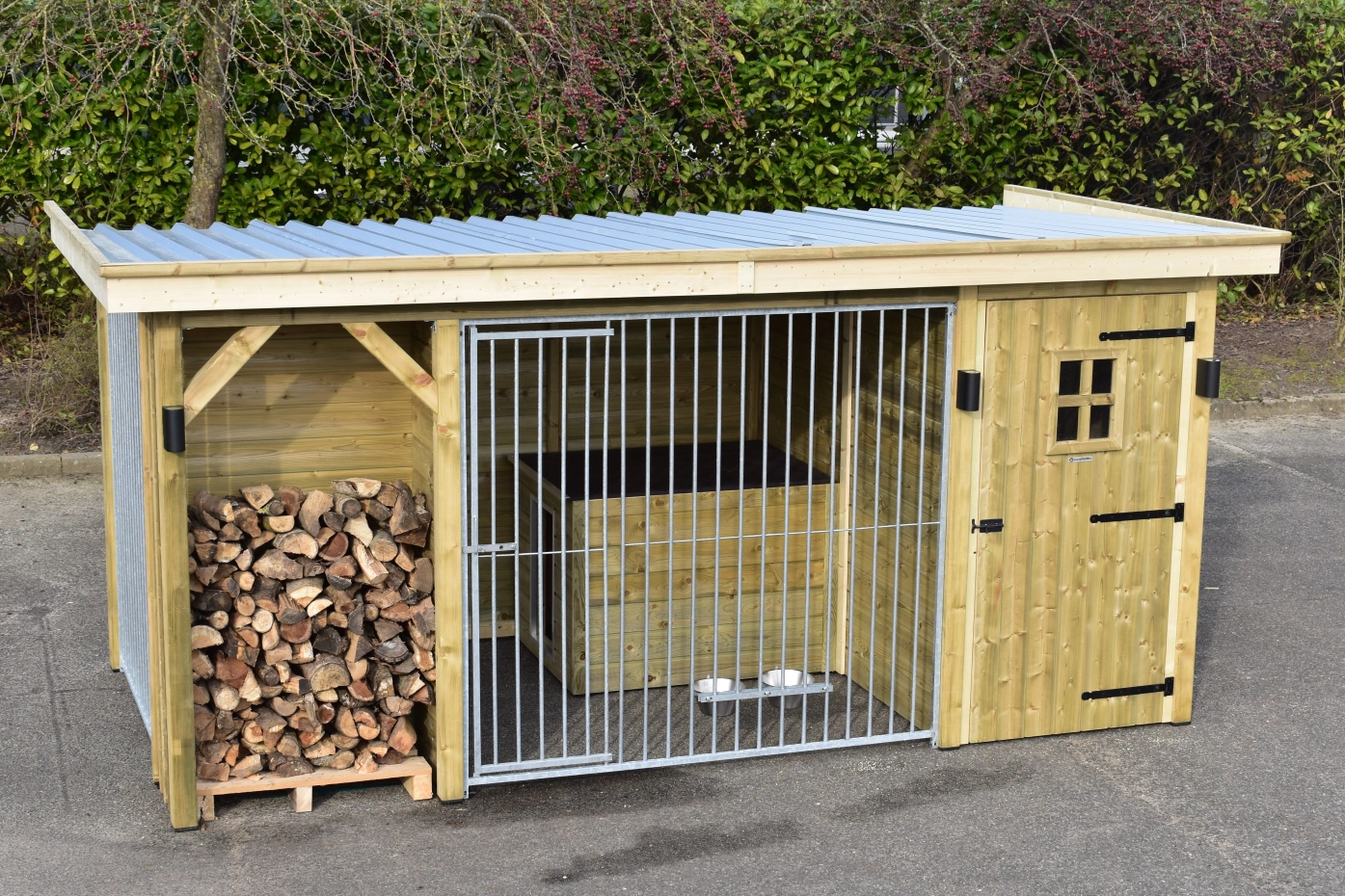 Hundezwinger Modul COMBI mit Stauraum und Feuerholzraum