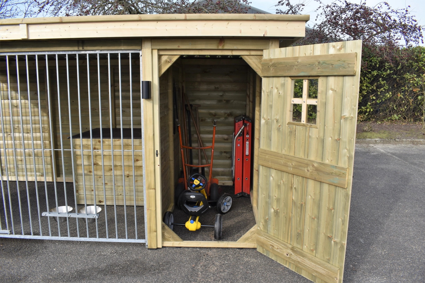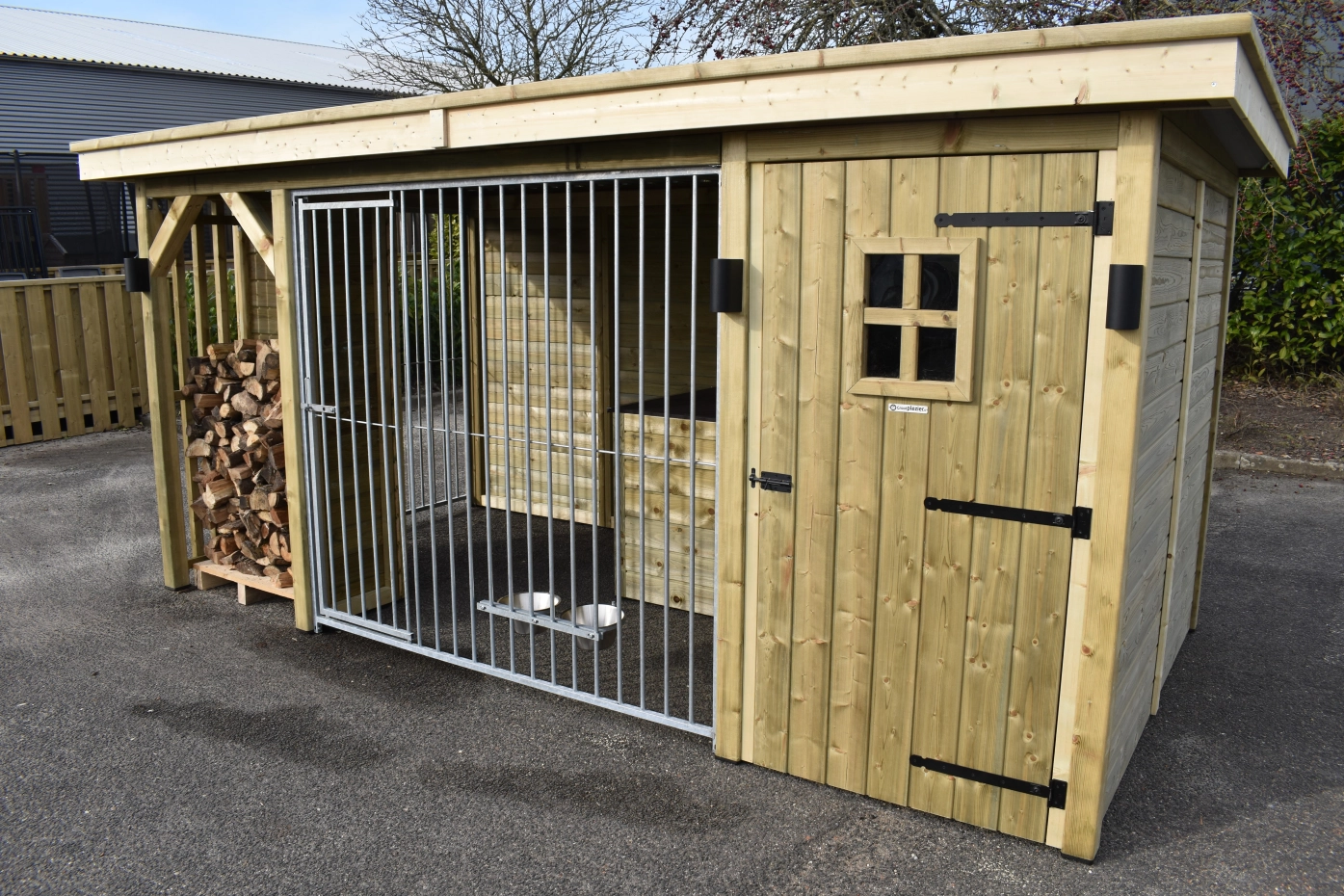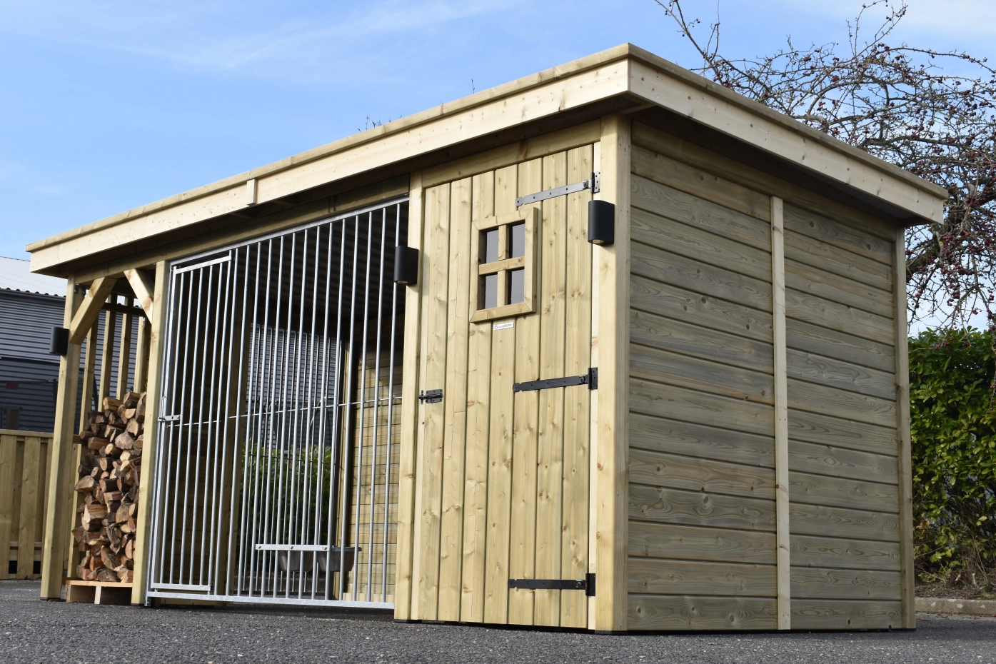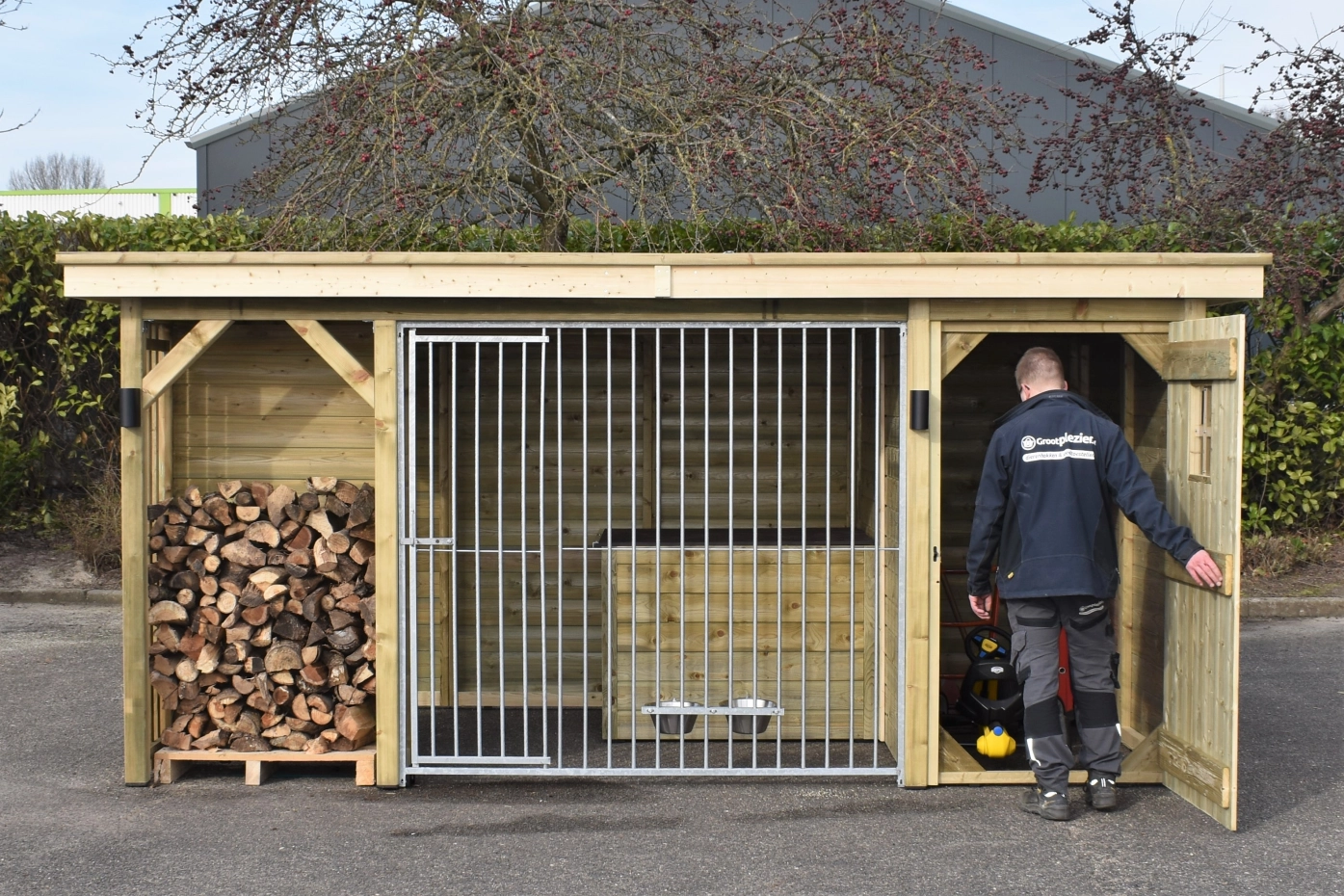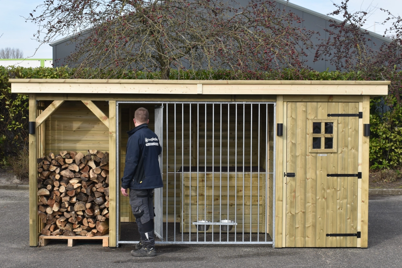 Hundezwinger Modul COMBI mit Stauraum und Feuerholzraum