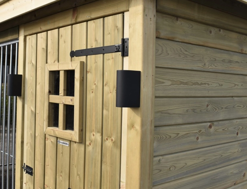 - Die Holzwände bieten Schutz gegen Wind, Niederschlag und Sonne. Dies schafft das ganze Jahr über ein besseres Klima im Zwinger.