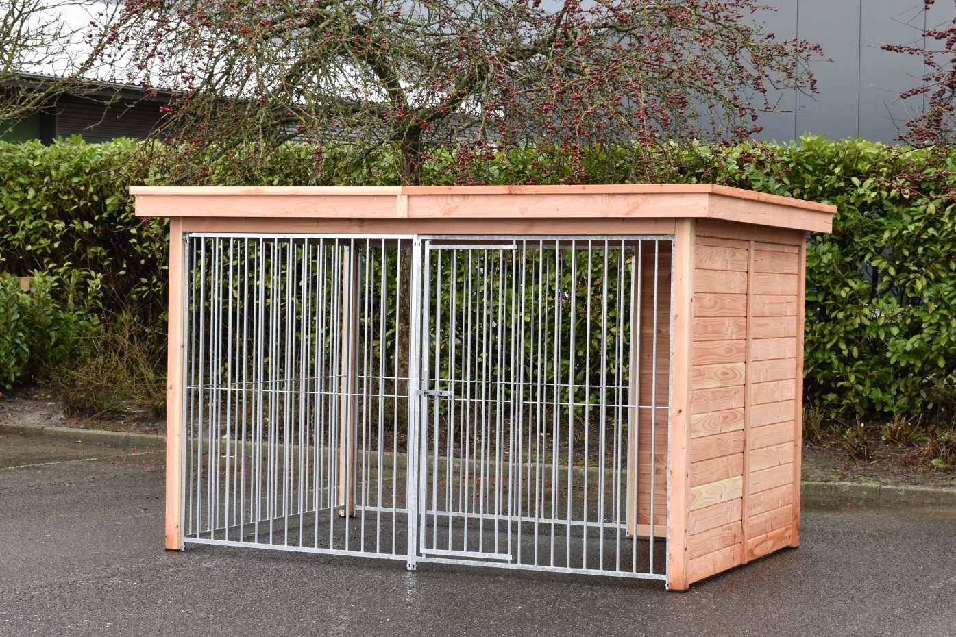 - Dieses Hundezwinger-Panel besteht aus 18 mm Douglasien-Rabatholz. Das Holz hat Dauerhaftigkeitsklasse C und muss nicht behandelt werden. Ohne Behandlung vergraut es jedoch schnell; Douglasienöl kann dies verhindern.