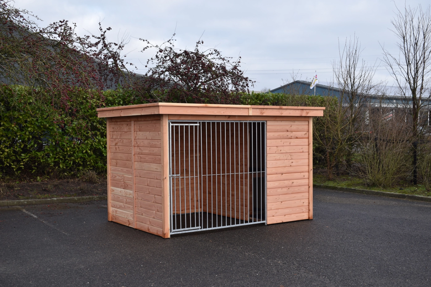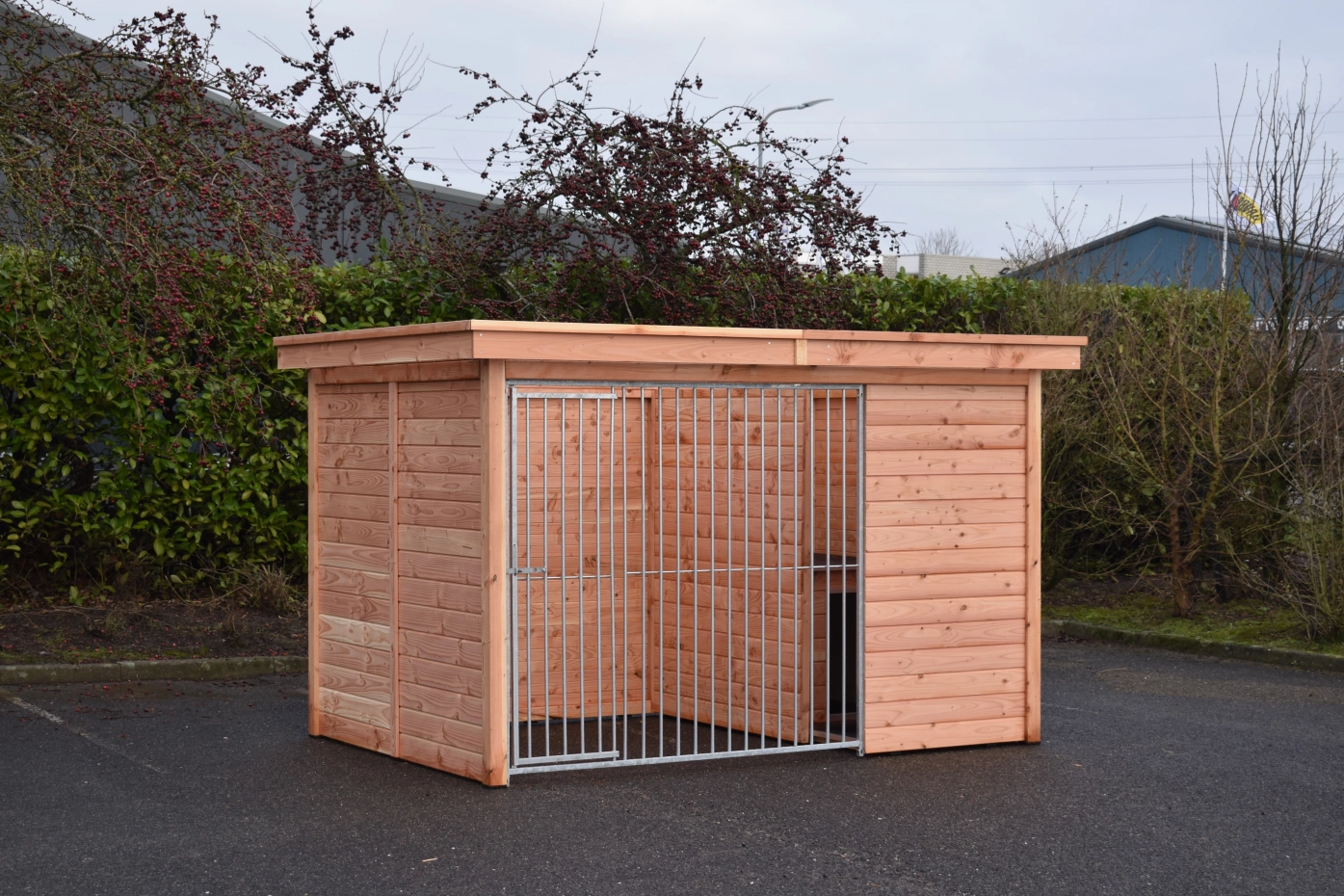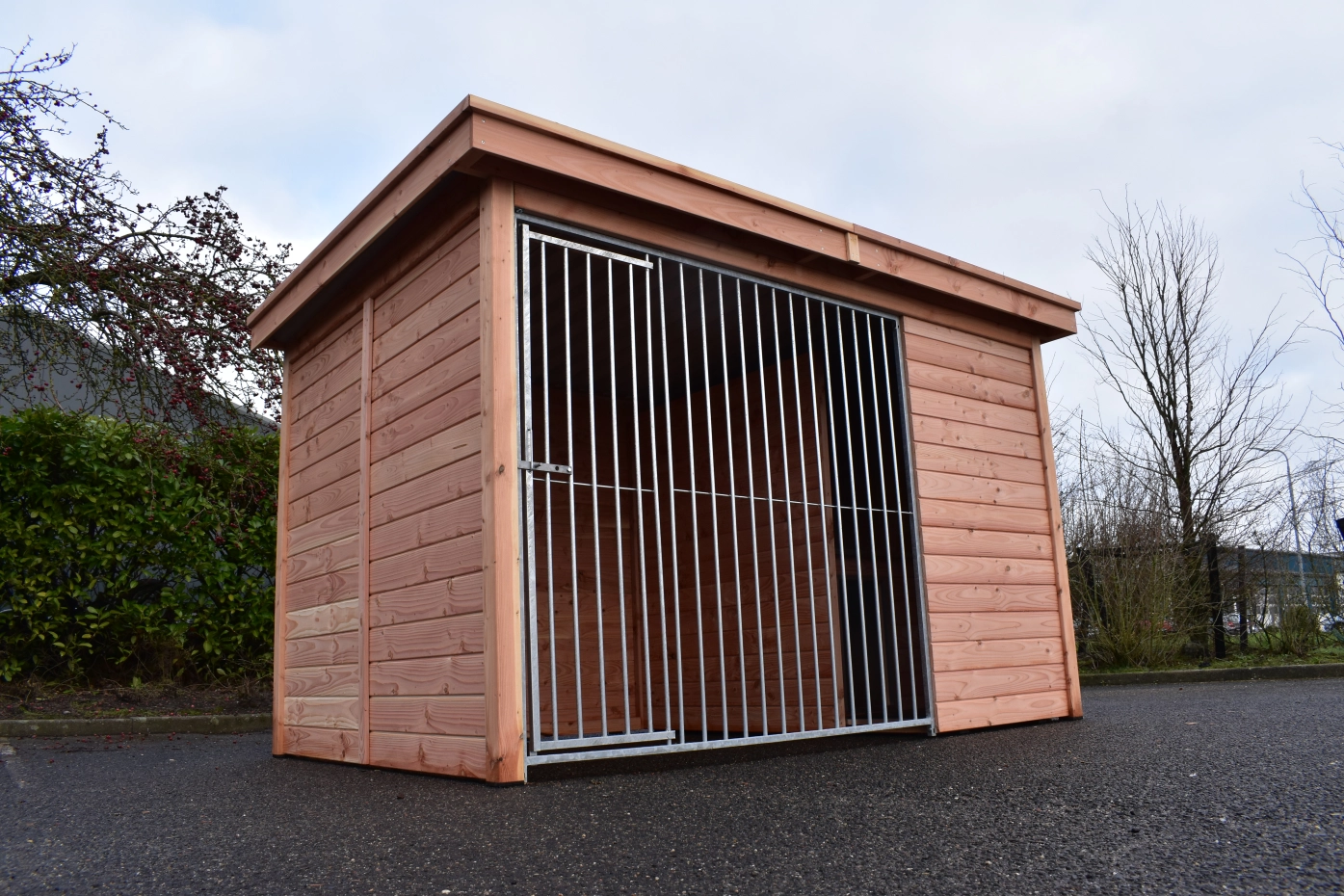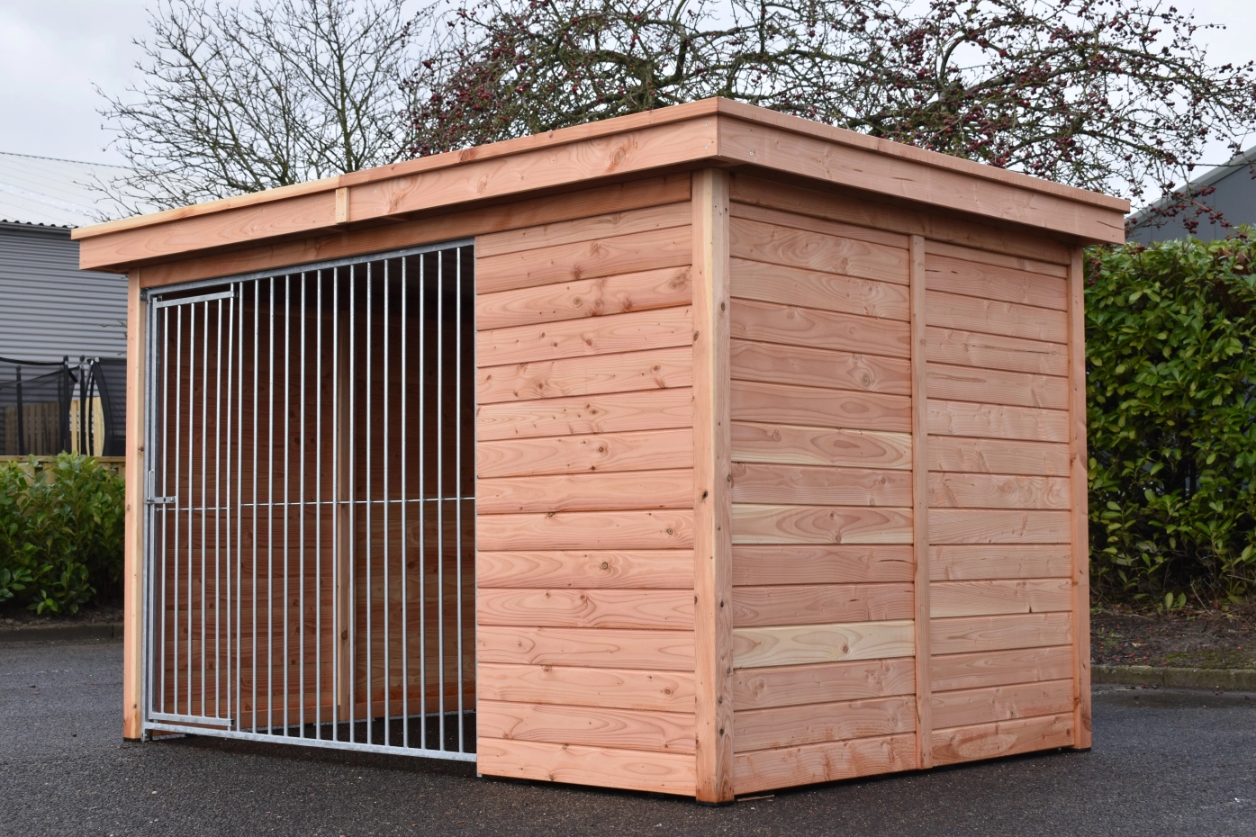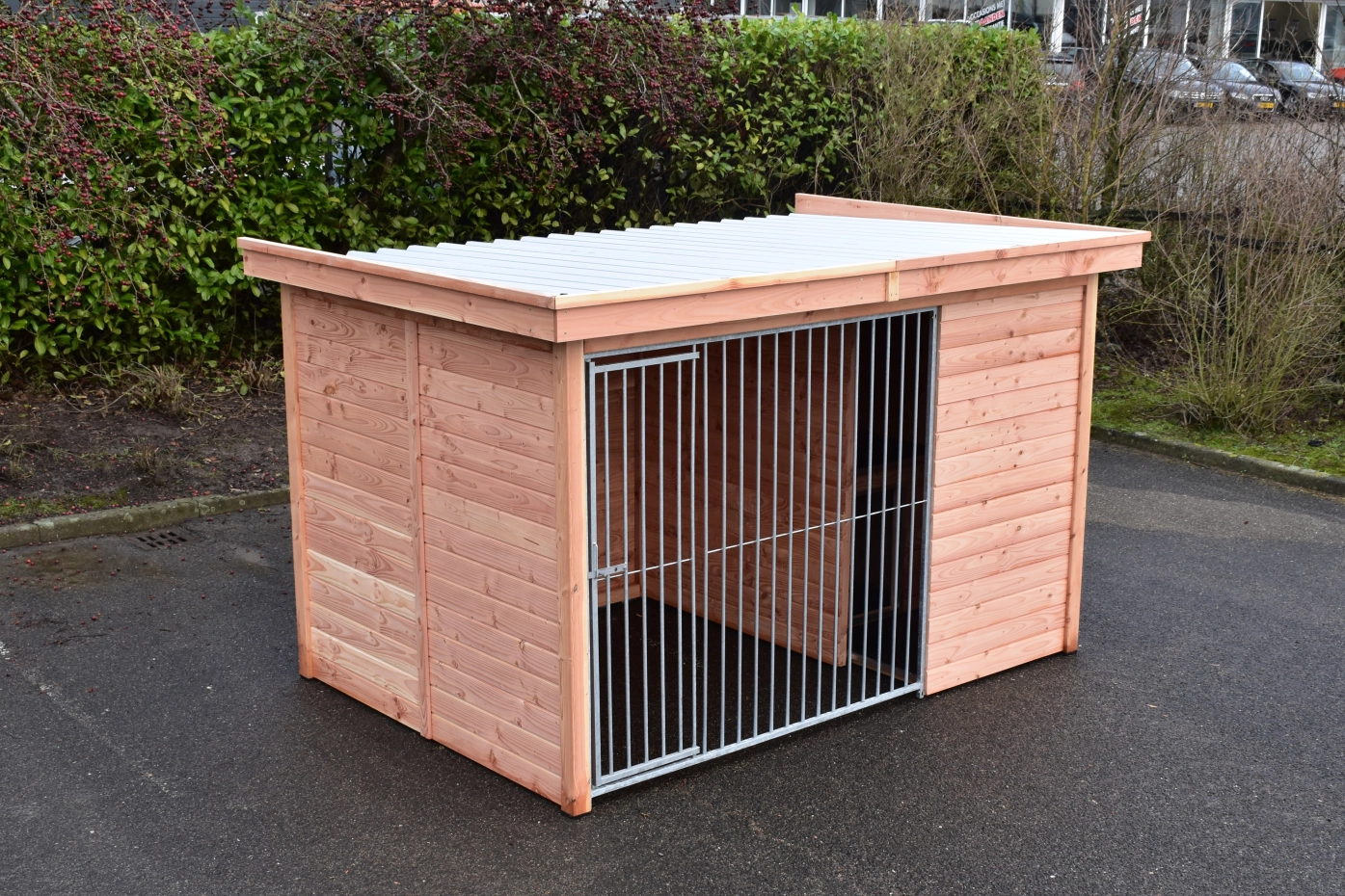 Der Hundezwinger Modul FORZ hat ein isoliert Schlafraum. Der Zwinger hat ein Douglasien Holzrahmen und ein galvanisiert Zwingerpaneel. Der Zwinger ist ausgestattet mit ein Dach Luxe. Der Schlafraum hat ein praktisch Klappdach. Ohne weitere Behandlung wird das Holz schnell vergrauen. Um die Farbe des Holzes zu erhalten, können Sie es mit Douglasöl behandeln. Auch ohne weitere Behandlung ist Douglasie sehr dauerhaft.