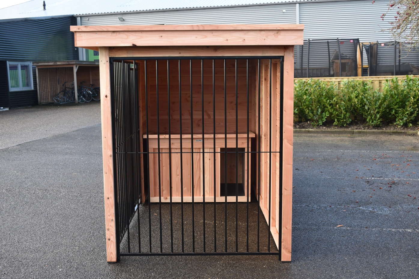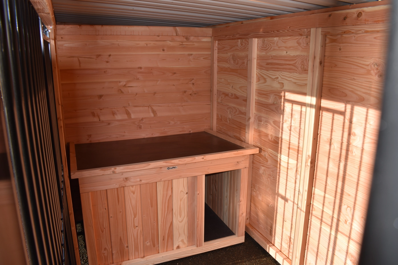 - Die Hundehütte ist versehen mit einer festen Windfang