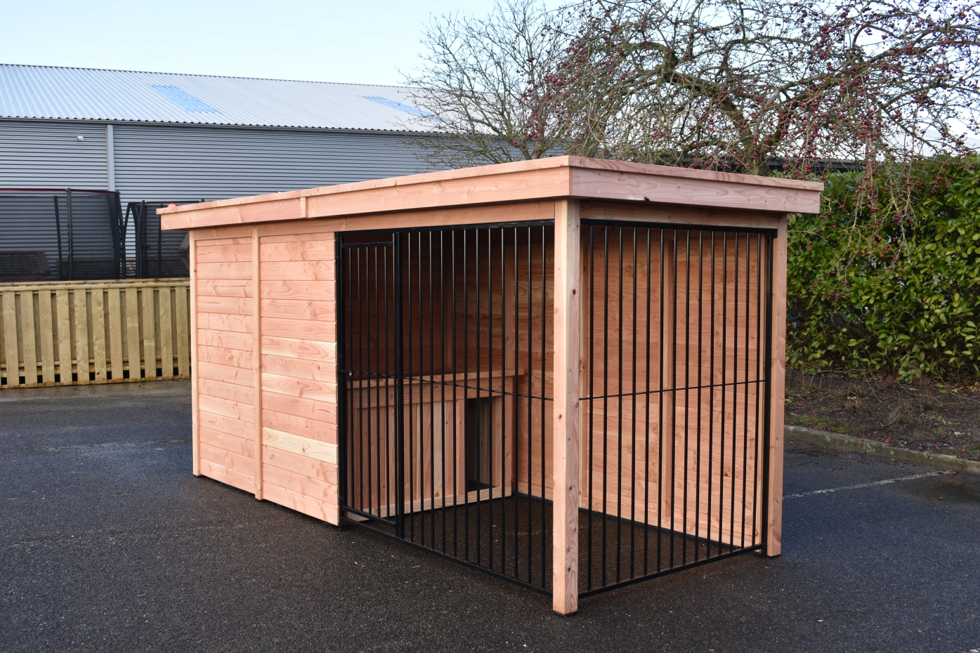 - Dieses Hundezwinger-Panel besteht aus 18 mm Douglasien-Rabatholz. Das Holz hat Dauerhaftigkeitsklasse C und muss nicht behandelt werden. Ohne Behandlung vergraut es jedoch schnell; Douglasienöl kann dies verhindern.