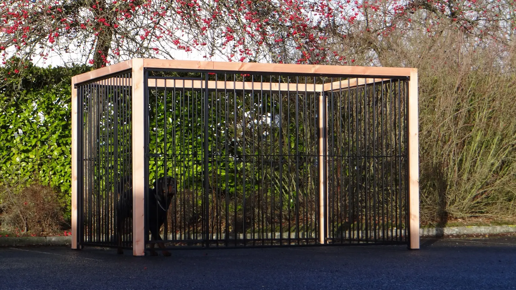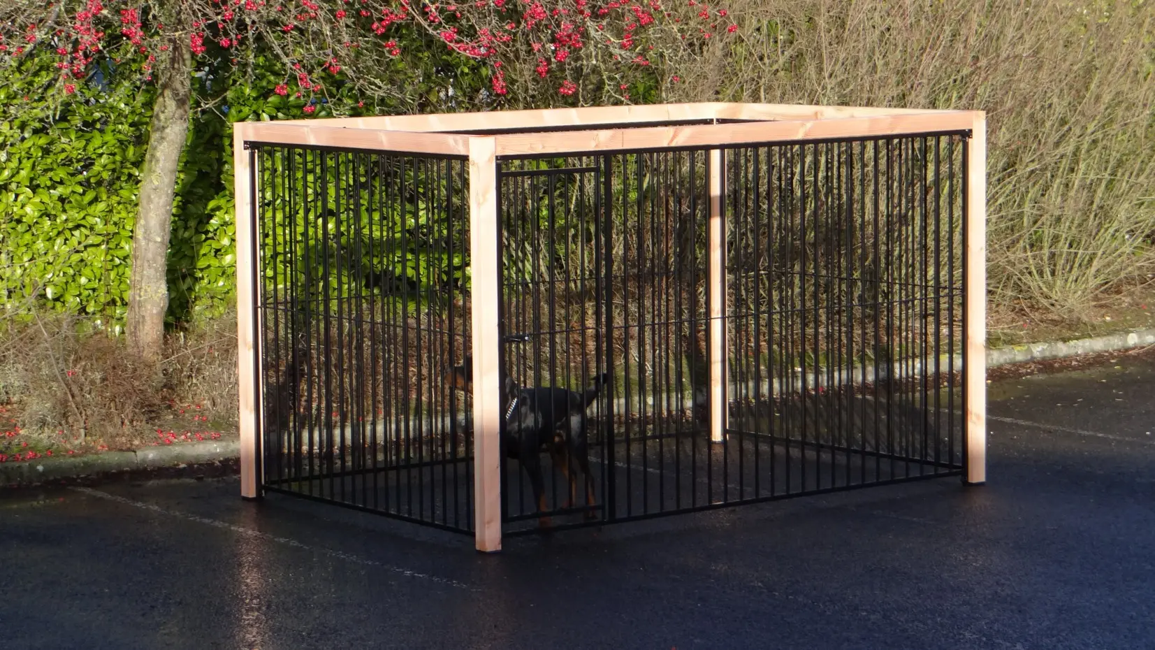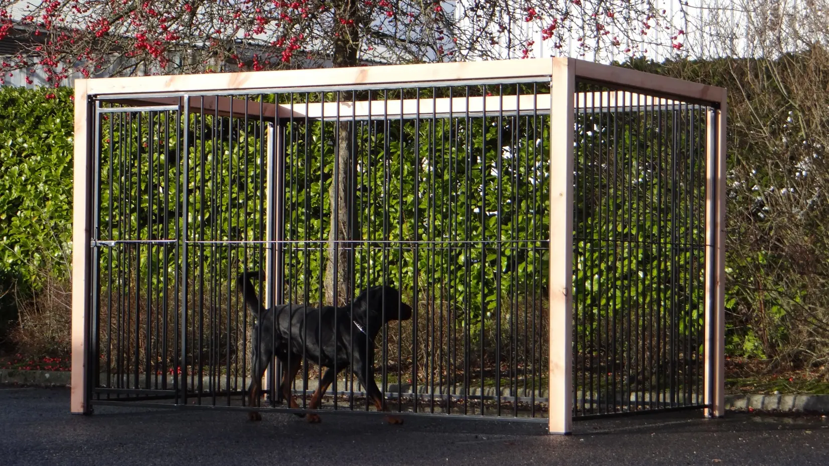 Der Hundezwinger Flinq schwarz mit Douglas-Holzrahmen ist eine sehr stabile und elegante Lösung für einen Auslauf. Der dicke Holzrahmen sorgt für eine besonders edle Optik und macht den Zwinger stärker als je zuvor. Dieser einzigartige Typ ist in vielen Größen und Ausführungen erhältlich; mit dem praktischen 3D-Tool können Sie eine Skizze erstellen.