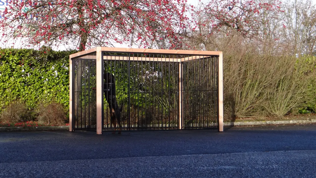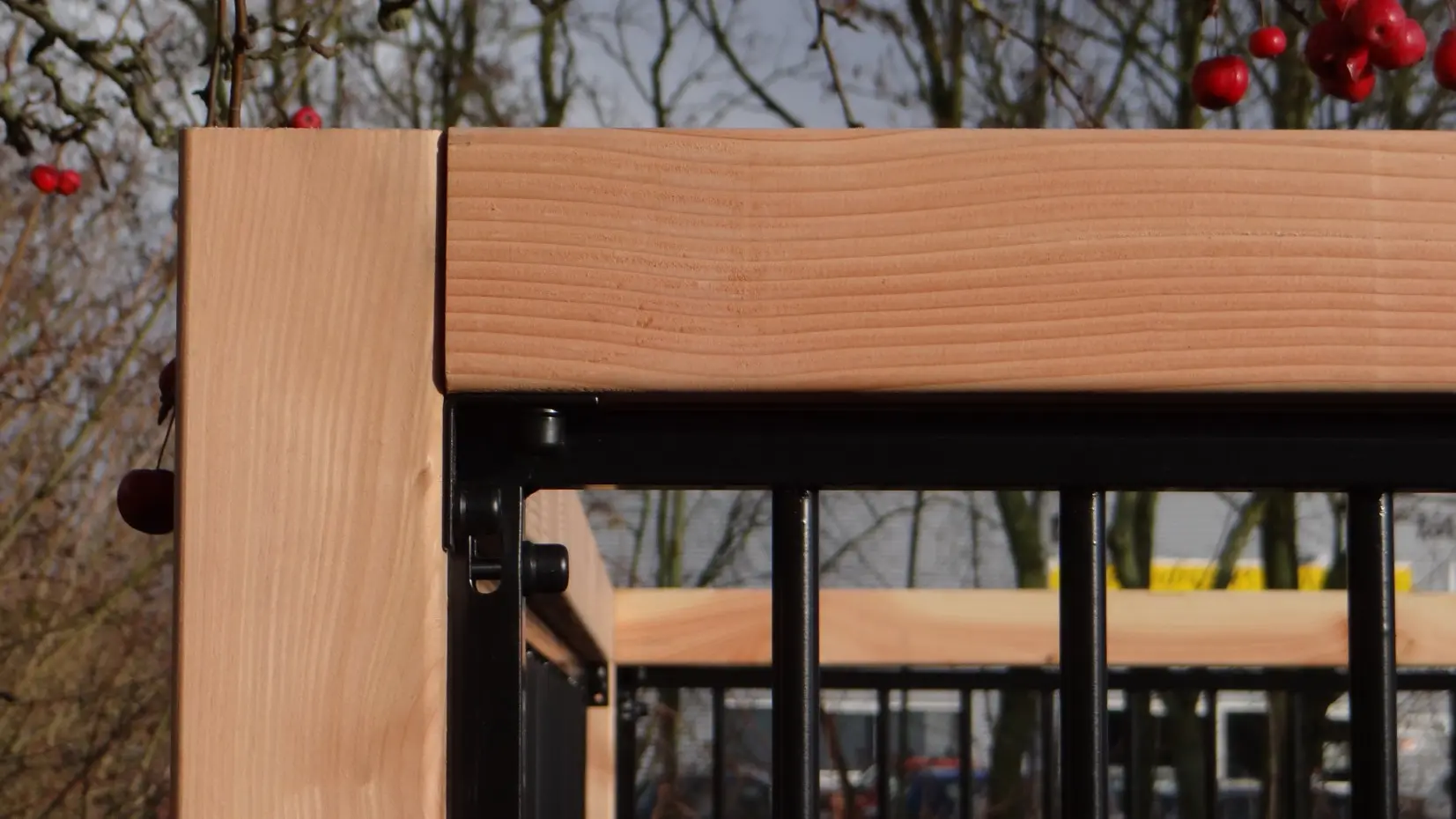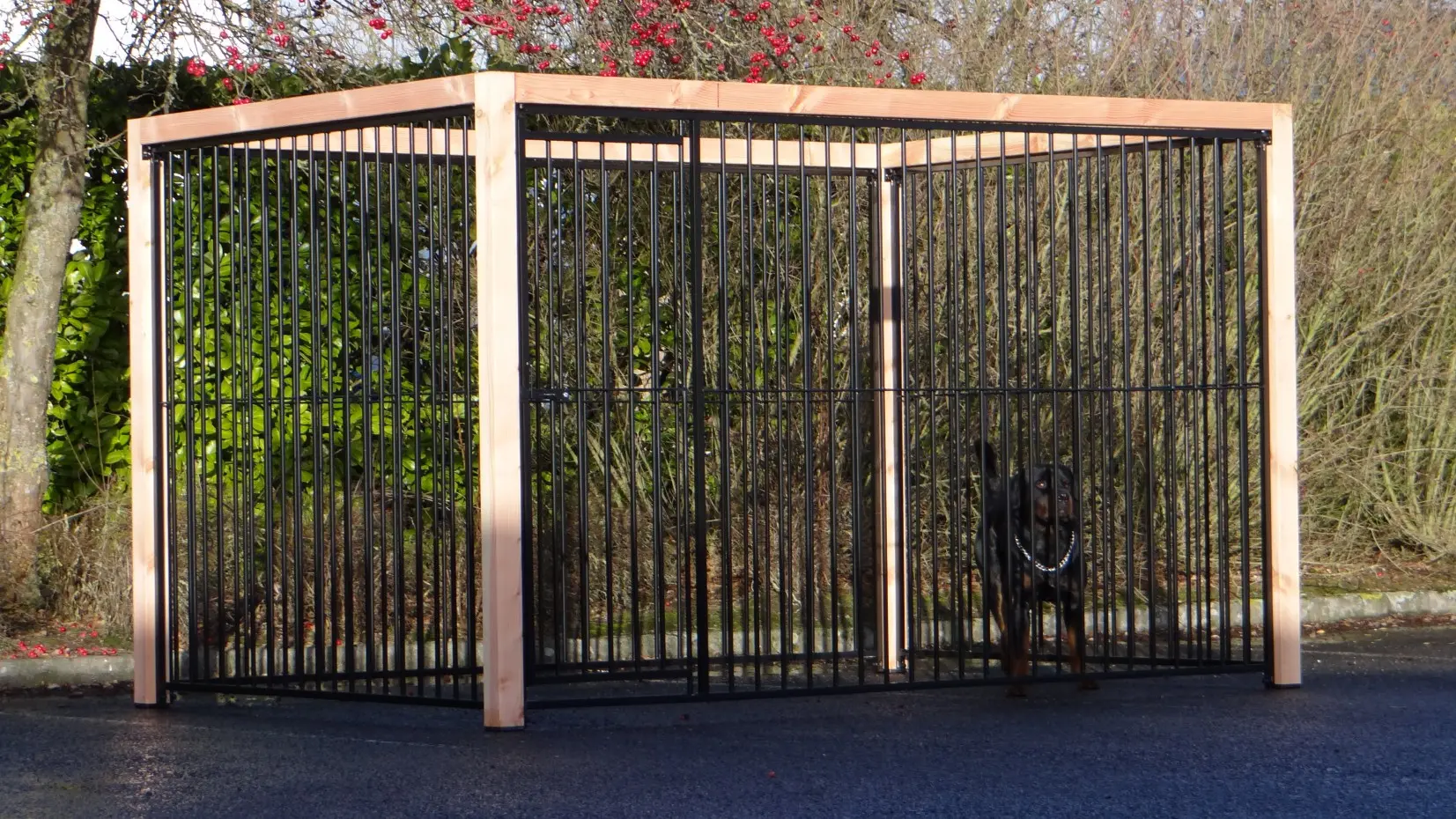 Der Hundezwinger Flinq schwarz mit Douglas-Holzrahmen ist eine sehr stabile und elegante Lösung für einen Auslauf. Der dicke Holzrahmen sorgt für eine besonders edle Optik und macht den Zwinger stärker als je zuvor. Dieser einzigartige Typ ist in vielen Größen und Ausführungen erhältlich; mit dem praktischen 3D-Tool können Sie eine Skizze erstellen.