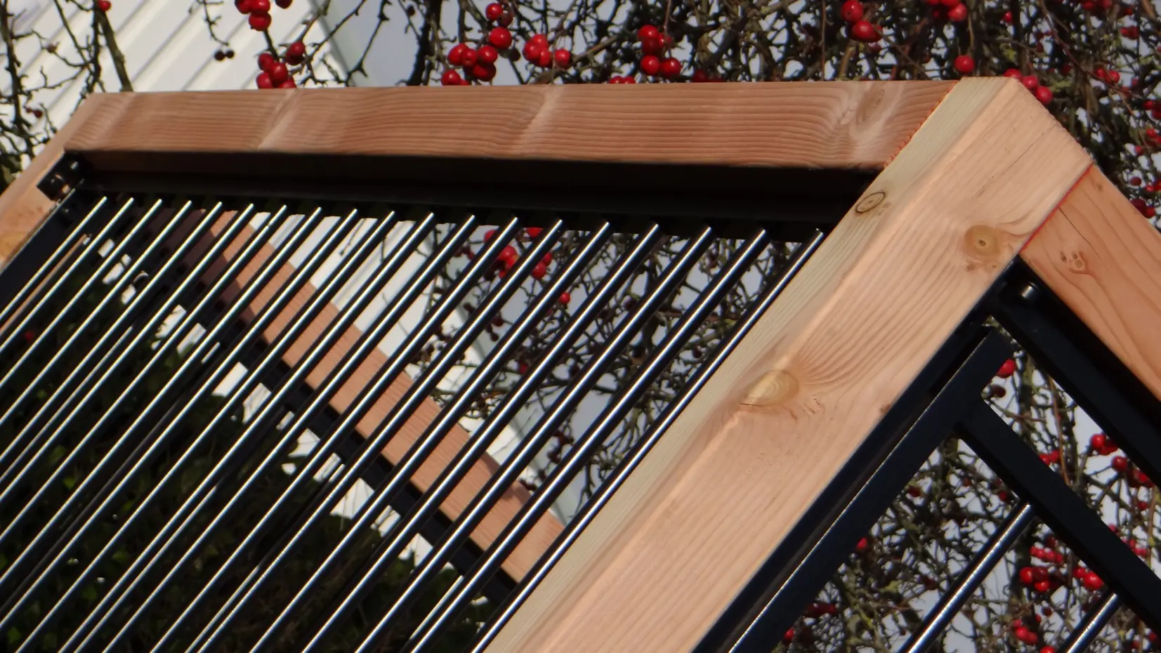 - Ungeschützte Holzkanten können mit Aluminiumstreifen versehen werden, um das Nagen zu verhindern. Sie können dies per E-Mail anfordern. Der Preis beträgt € 9,00 pro Meter (inkl. Montage).