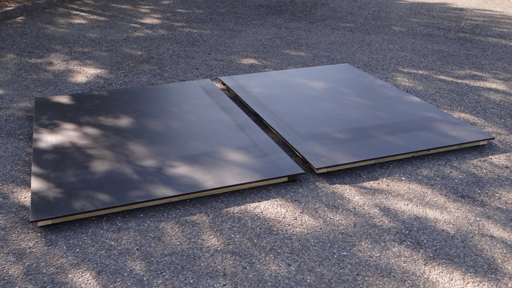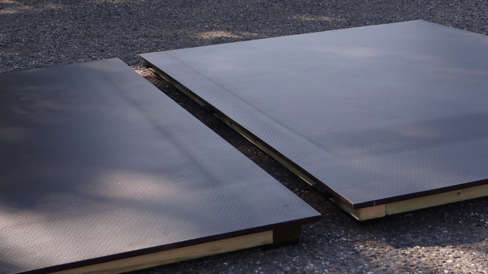 Kennelboden Solid: Diese Böden werden passgenau zwischen die Kennel-Paneele gefertigt. Dieser Kennelboden ist für alle Kennels ohne Holzrahmen geeignet. Durch die Verwendung von 15 mm starkem Betonplex mit Hexagrip (Anti-Rutsch) ist dieser Boden äußerst langlebig. Da er wasserdicht ist, lässt er sich sehr leicht reinigen. Als Rahmen werden schwarz imprägnierte Latten (68x44 mm) verwendet, die mit robusten Kunststofffüßen ausgestattet sind, damit Regenwasser nicht in das Holz eindringen kann. Der Boden besteht aus mehreren Teilen (1, 2, 3 oder 4), die einfach ineinandergeschoben werden können.