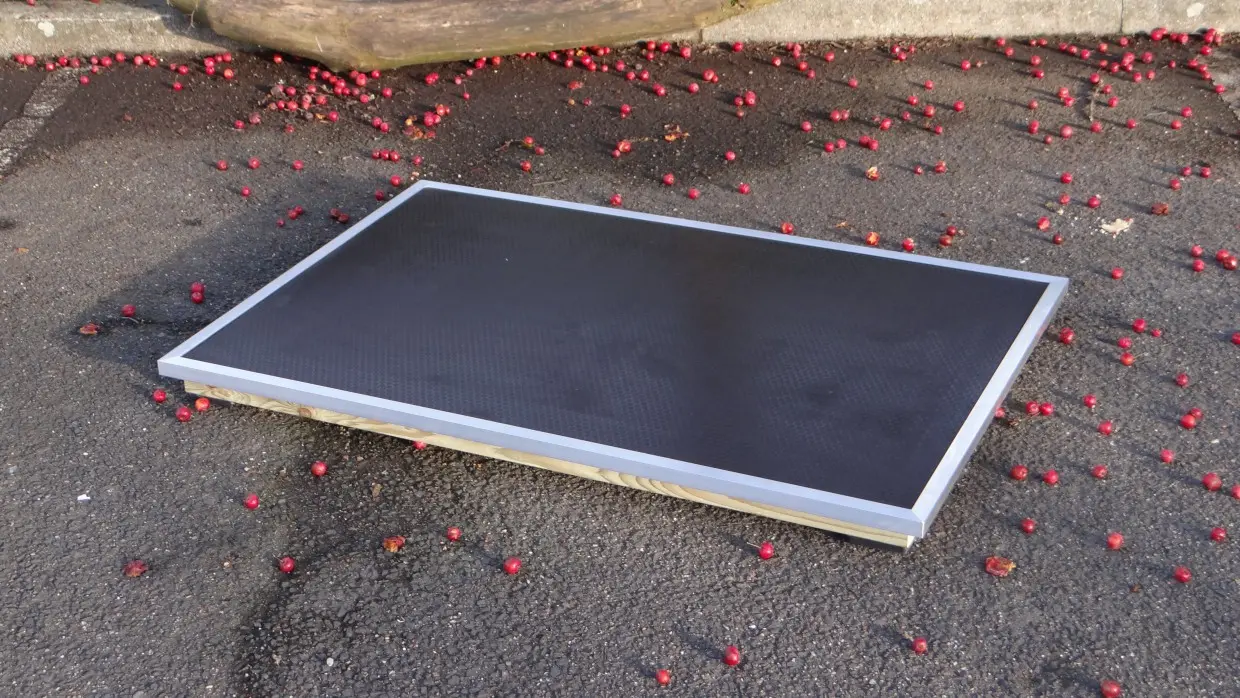 Die Solide Terrasse 153x101cm ist ein wunderschöner und superstabiler Boden, der oft genutzt wird, um Hunden einen gemütlichen Liegeplatz zu bieten. Diese Terrassen werden von unserem eigenen Tischler gefertigt und sind bis ins Detail verarbeitet. Der Boden besteht aus 15 mm dickem Beton-Sperrholz mit Hexagrip-Anti-Rutsch-Beschichtung. Die Gesamthöhe dieser Terrasse beträgt ca. 8 cm.