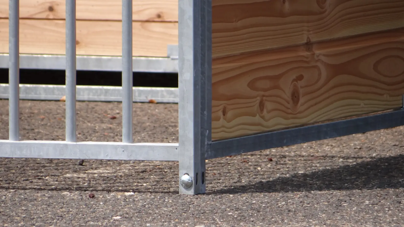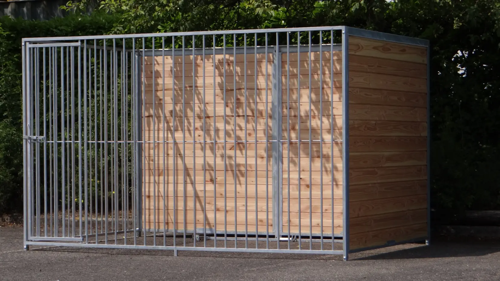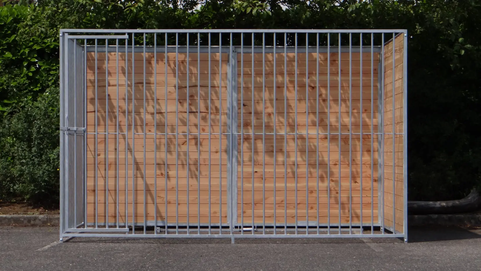 Der Zwinger von 3x2m ist versehen mit 2 geschlossenen Wände und 2 Gitterplatten von welchen 1 mit Türöffnung für eine optimale Zugang. Da durch bekommt Ihr Hund eine geschützte Ecke wo er liegen kann, oder wo seine Hundehütte stehen kan.