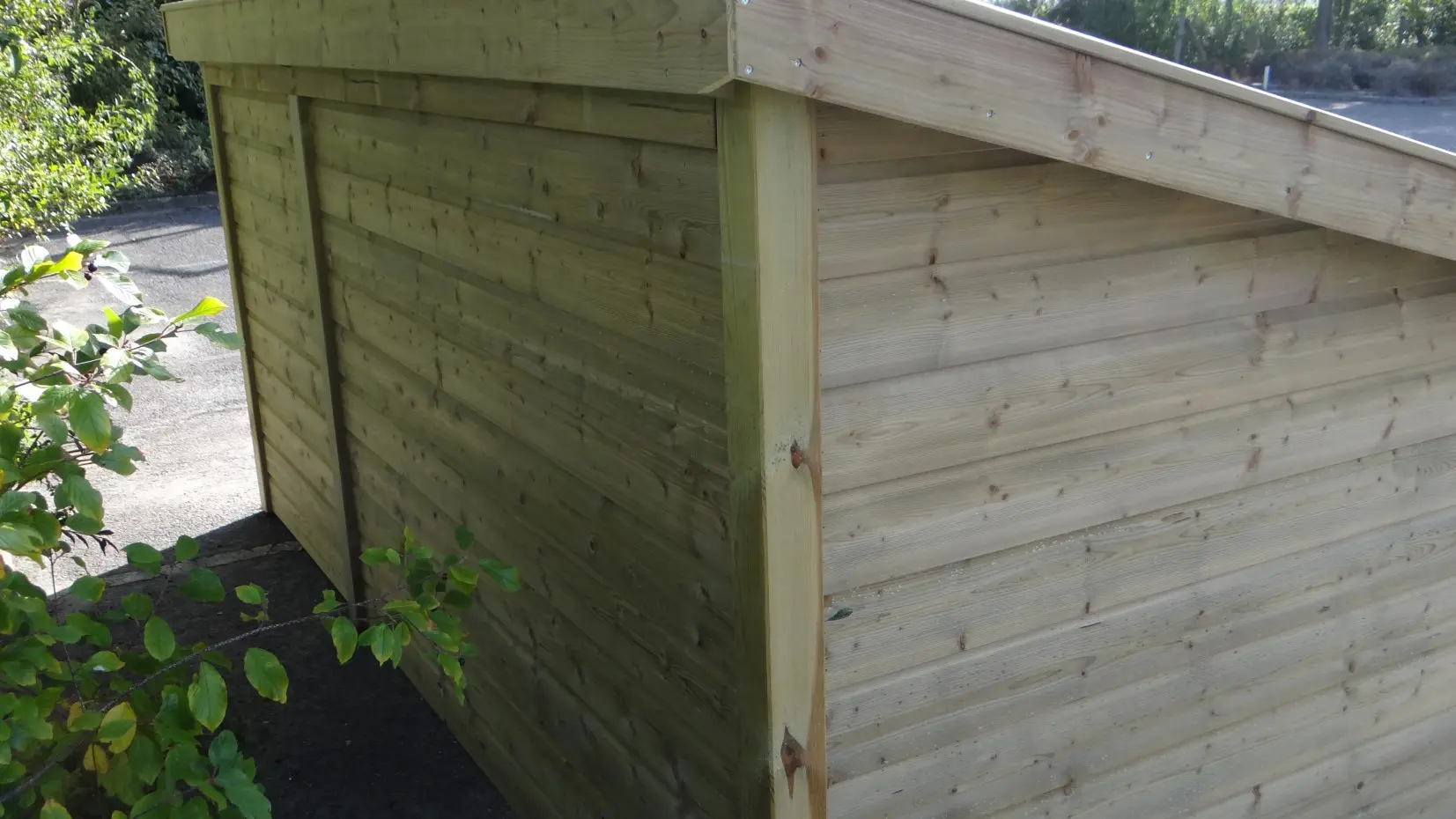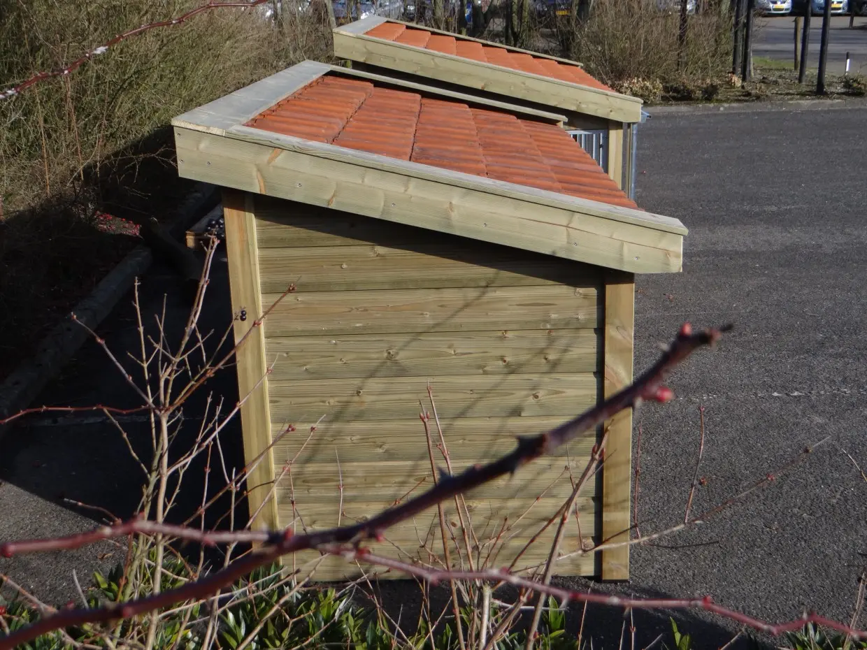 - Ungeschützte Holzkanten können mit Aluminiumstreifen versehen werden, um das Nagen zu verhindern. Sie können dies per E-Mail anfordern. Der Preis beträgt € 9,00 pro Meter (inkl. Montage).