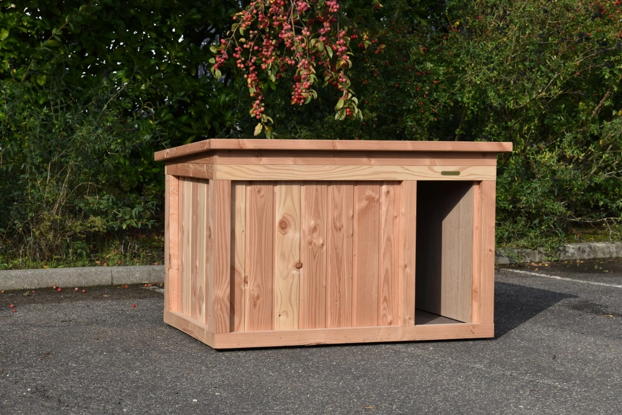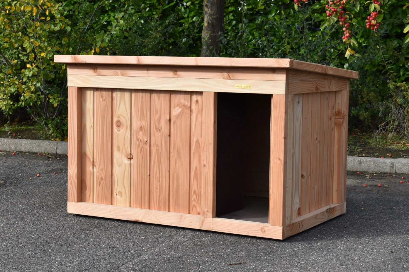 - Die Hundehütte ist versehen mit einer festen Windfang