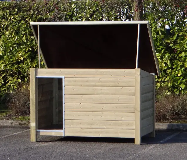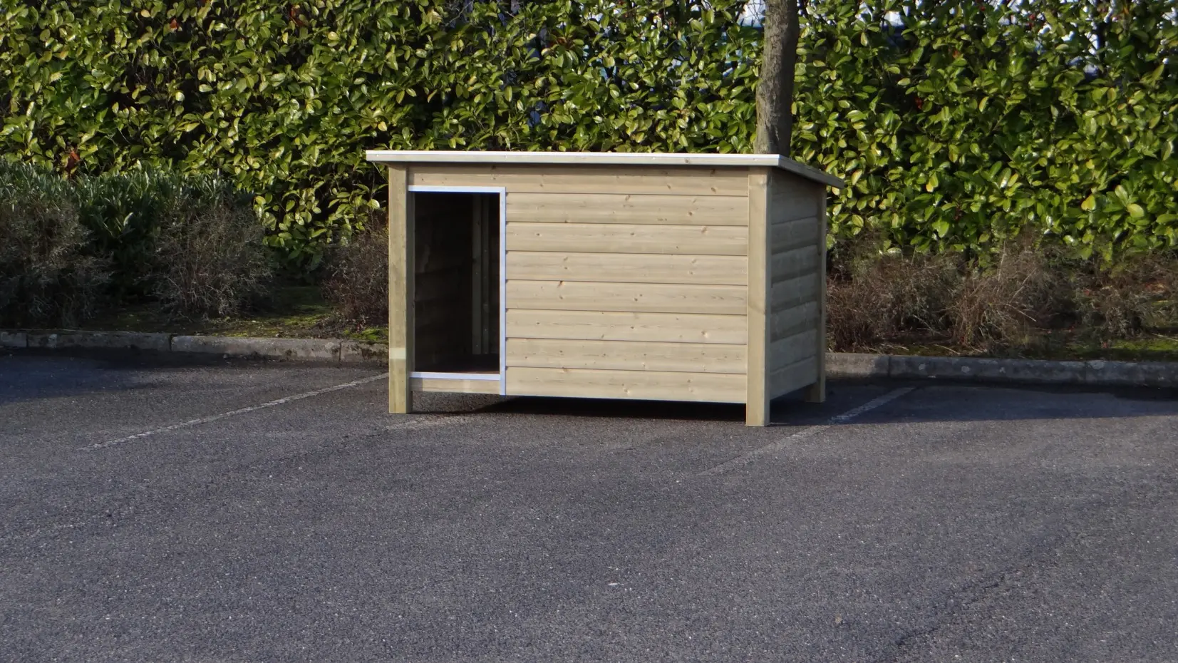 - Es handelt sich um eine hochwertige und gediegene Hundehütte – sehr praktisch, komfortabel und beständig