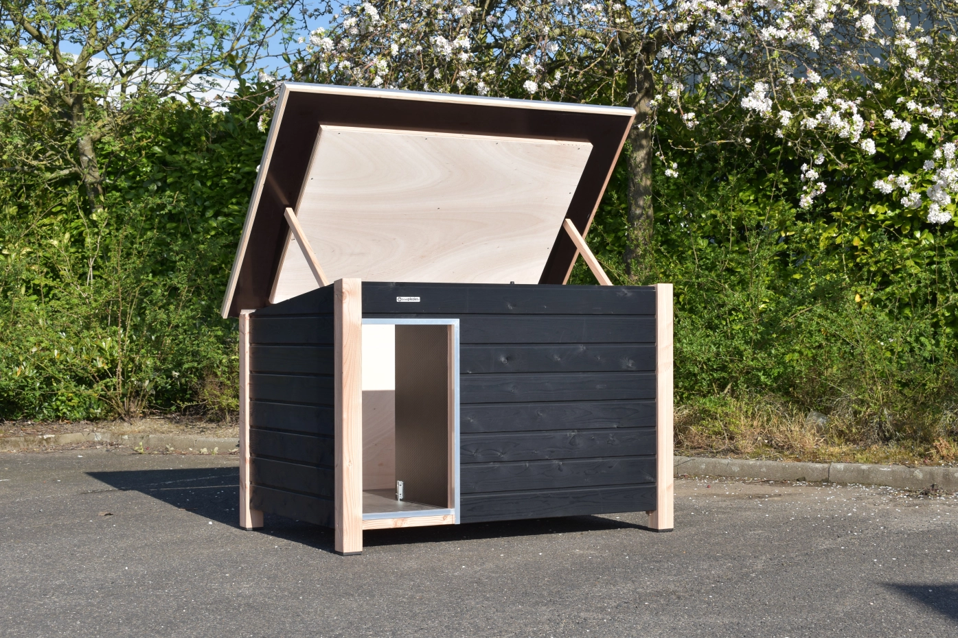 - Es handelt sich um eine hochwertige und gediegene Hundehütte – sehr praktisch, komfortabel und beständig