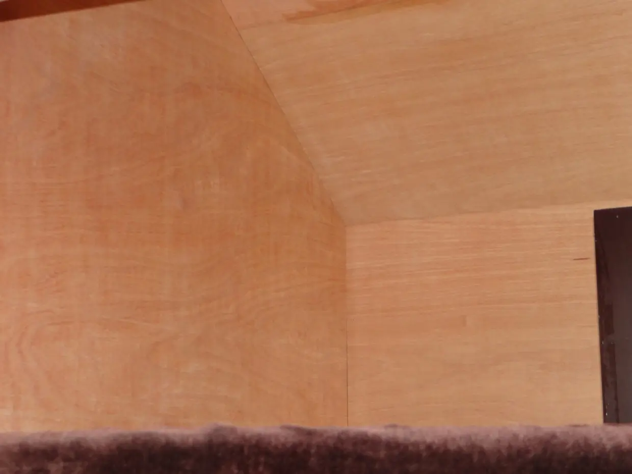 • Das Innere ist mit hartem Sperrholz ausgekleidet.