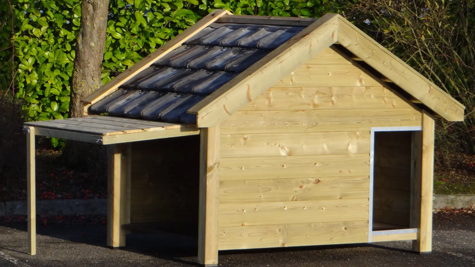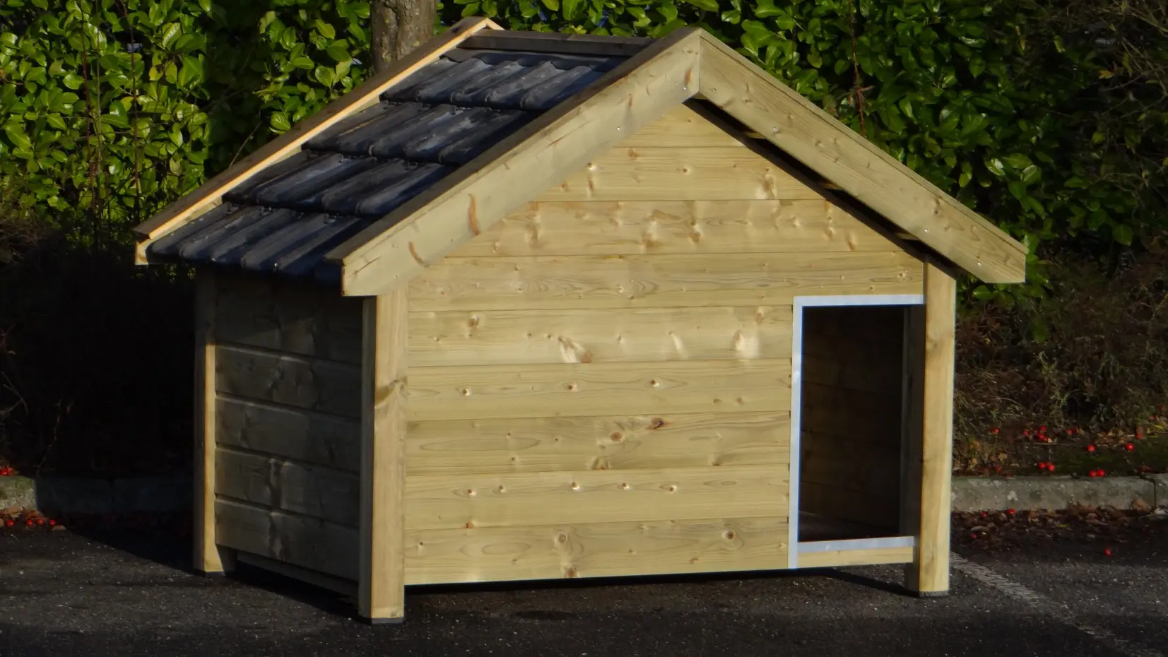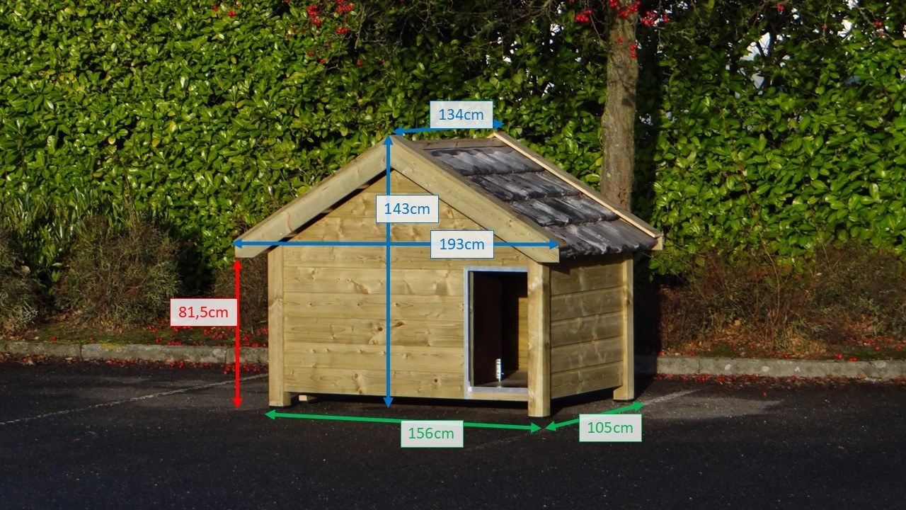 Das isolierte Hundehaus Snuf ist ein großes Hundehaus. Es besteht aus imprägniertem Fichtenholz in Kombination mit Betonplex und echten Dachziegeln. Sehr praktisch und komfortabel! Die isolierten Wände sind ganze 7 cm dick. Außenmaße ca.: 193 × 134 × 143 cm (B × T × H). Isoliertes Hundehaus aus Holz in Top-Qualität!