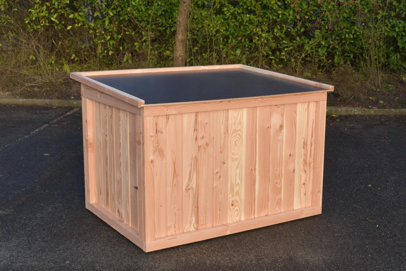 - Wir empfehlen das Holz zu behandeln mit Douglasien-Öl um zu verhindern dass das Holz grau wird
