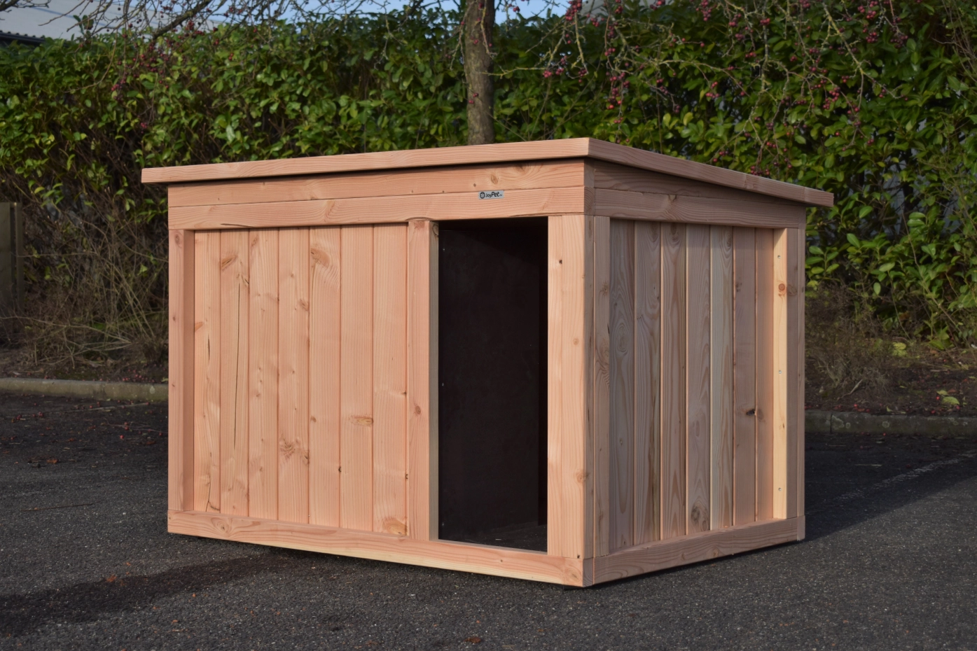 Die Hundehütte Block Extra Large besteht aus Douglasienholz. Mit ihrem robusten und stilvollen Design ist diese Hundehütte ein echter Tipp! Boden, Wände und Dach sind isoliert. Diese stabile Hütte ist ideal für große Hunde wie Boerboel, Deutsche Dogge, Dänische Dogge, Neufundländer, Bernhardiner, Berner Sennenhund, Tibetmastiff.