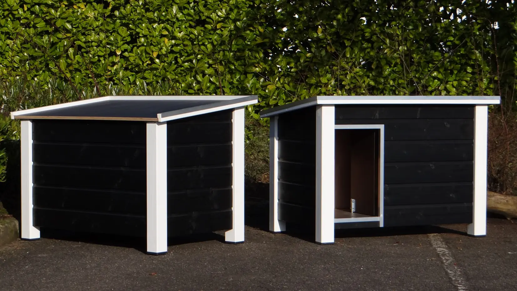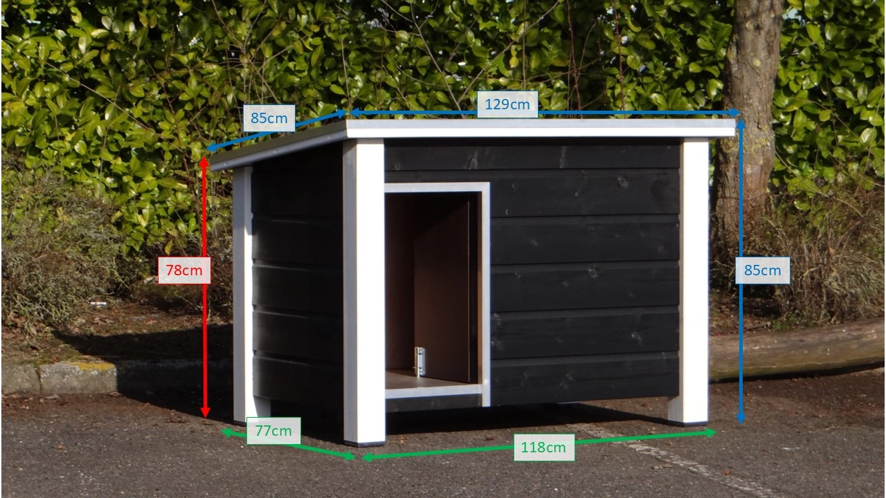 Isolierte Hundehütte Ferro ist herstellt aus imprägniertes Fichtenholz. Dieser Hütte ist lackiert in schwarz/weiß und ist isoliert. Die maximale Abmessungen sind 129x85x85cm. Geeignete Hunde für diese Hundehütte sind zum Beispiel der Border Collie, Englische Cocker Spaniel und die Englische Bulldogge.