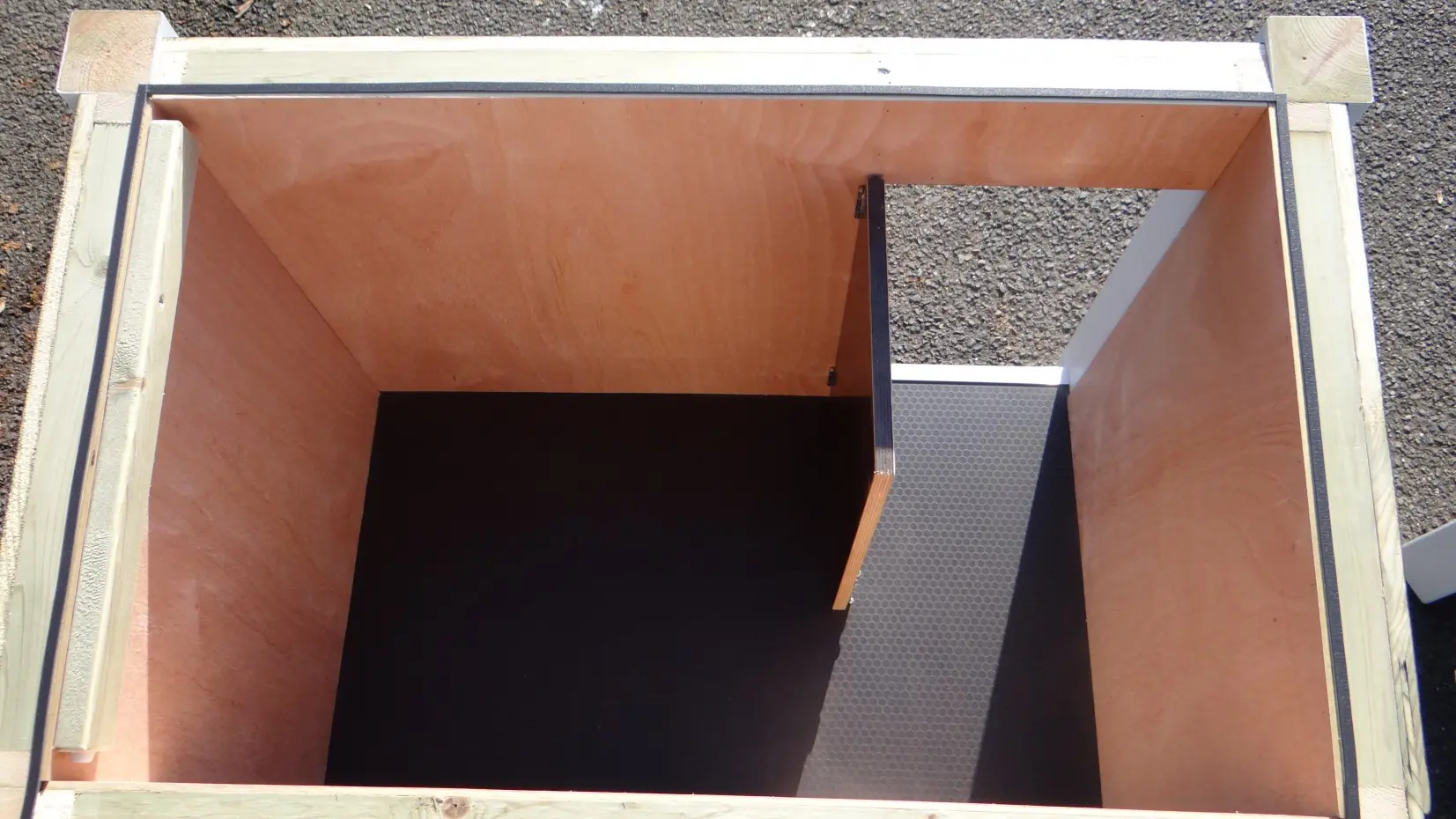 - Das Innere ist mit hartem Sperrholz ausgekleidet.
