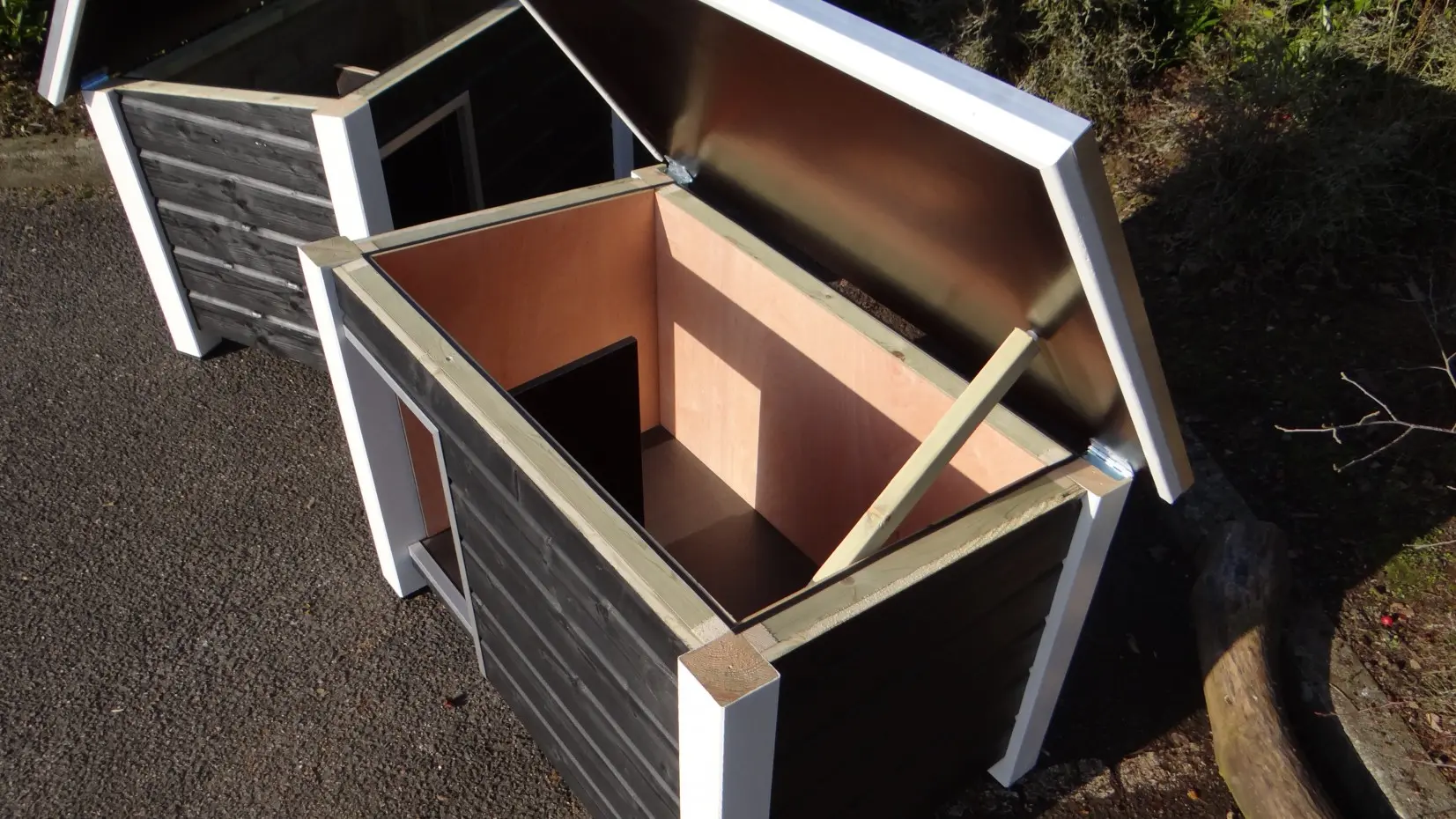 - Es handelt sich um eine hochwertige und gediegene Hundehütte – sehr praktisch, komfortabel und beständig