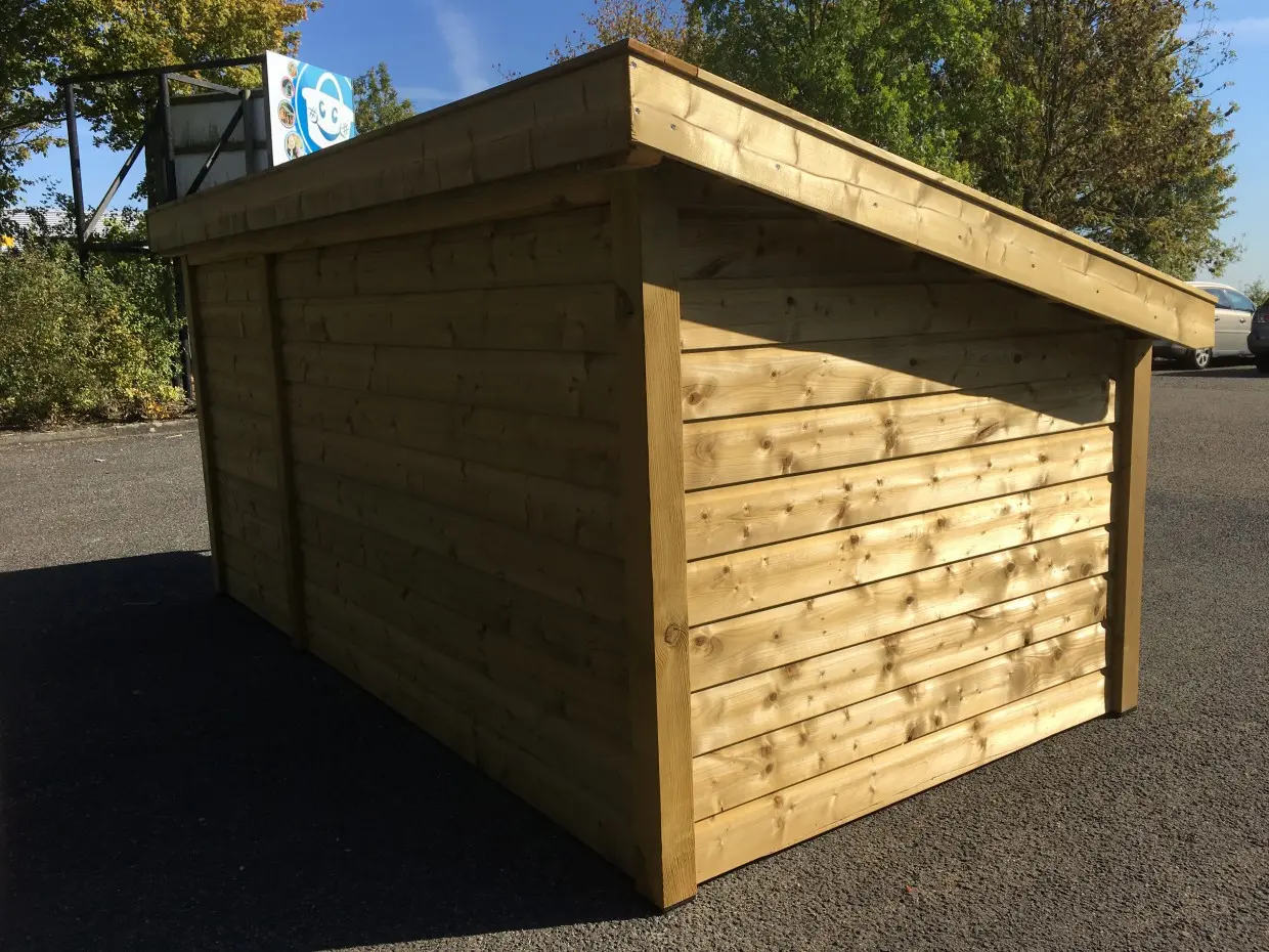 • Die Holzpaneele sind mit 18 mm dicken konservierten Nut- und Federbrettern ausgerüstet.