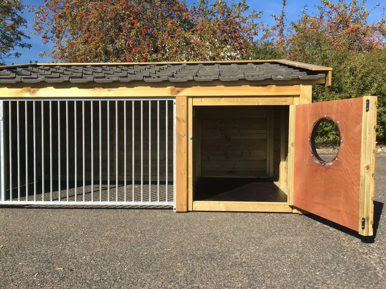 • Bellt nicht, aber beißt: Zwinger mit geschlossenem Dach