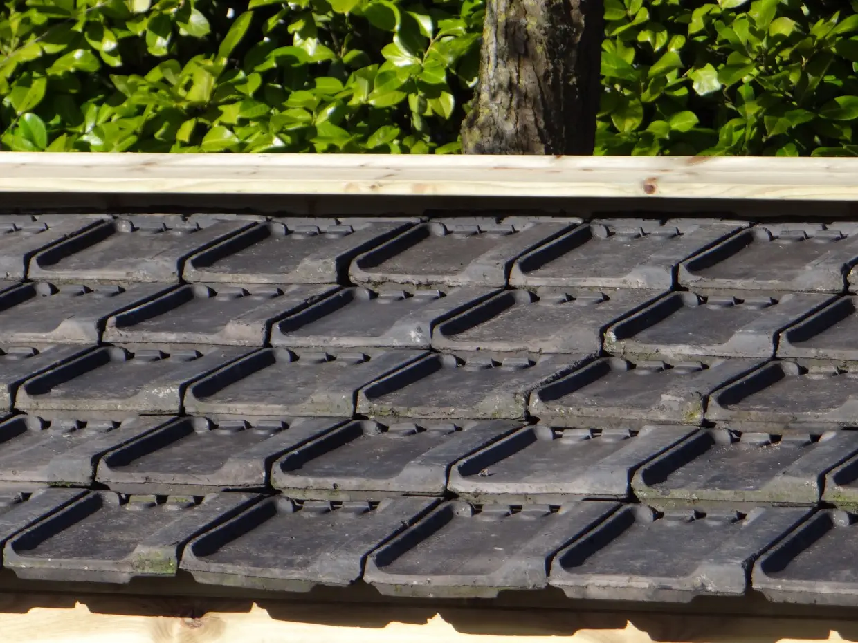 • Die Außenabmessungen können etwas mehr oder weniger sein, abhängig von den Abmessungen der Dachziegel