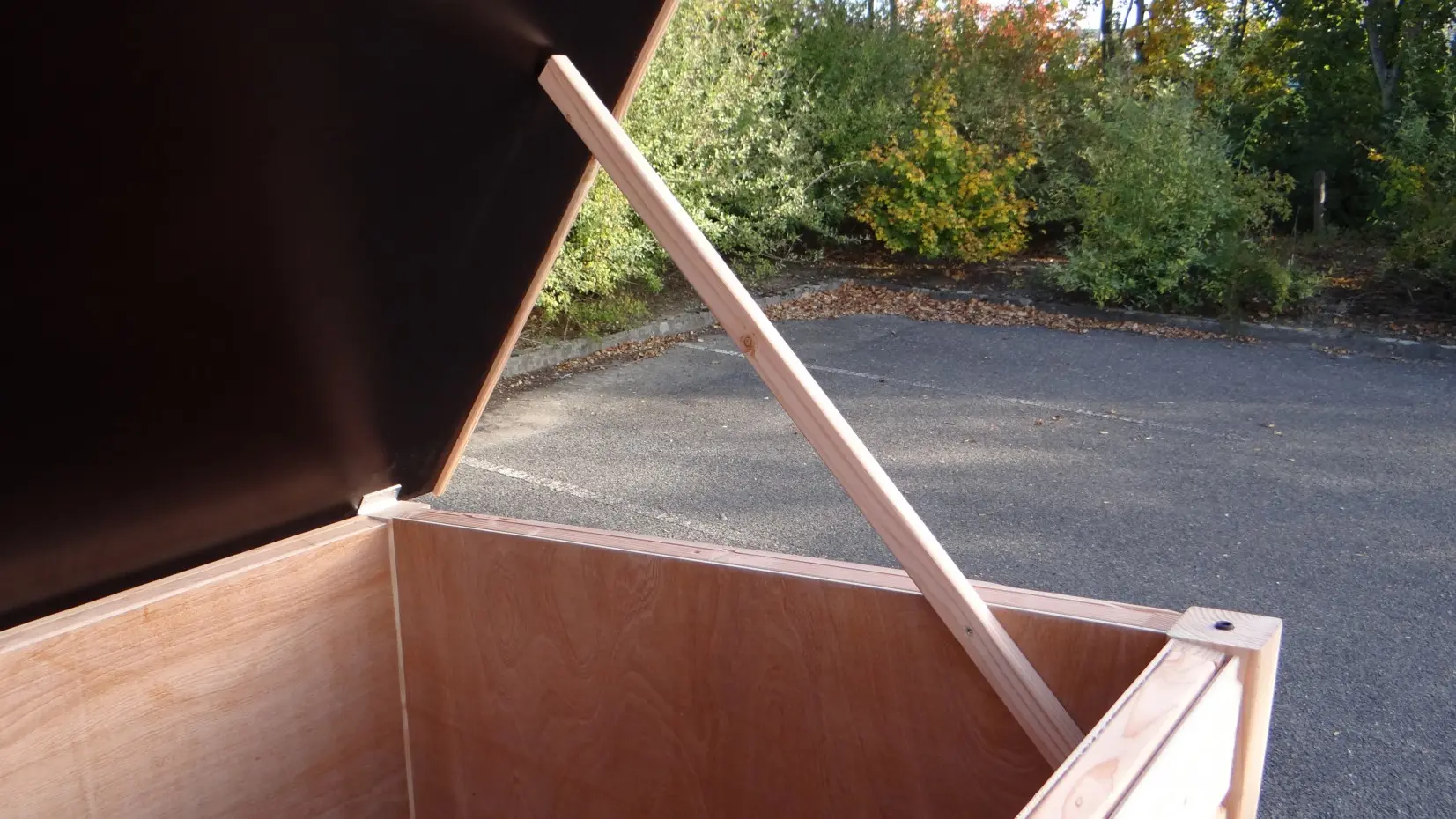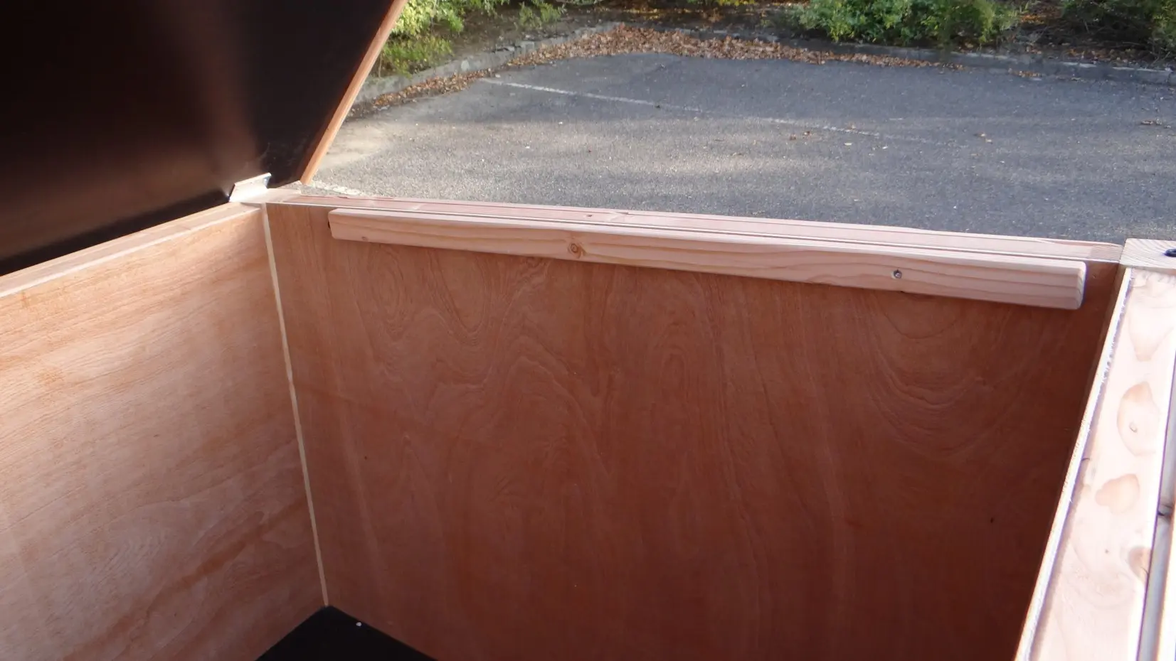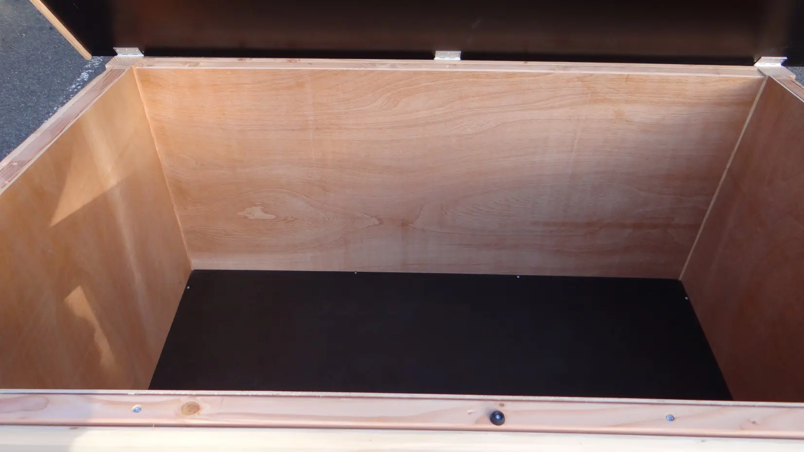 - Das Innere ist mit hartem Sperrholz ausgekleidet.