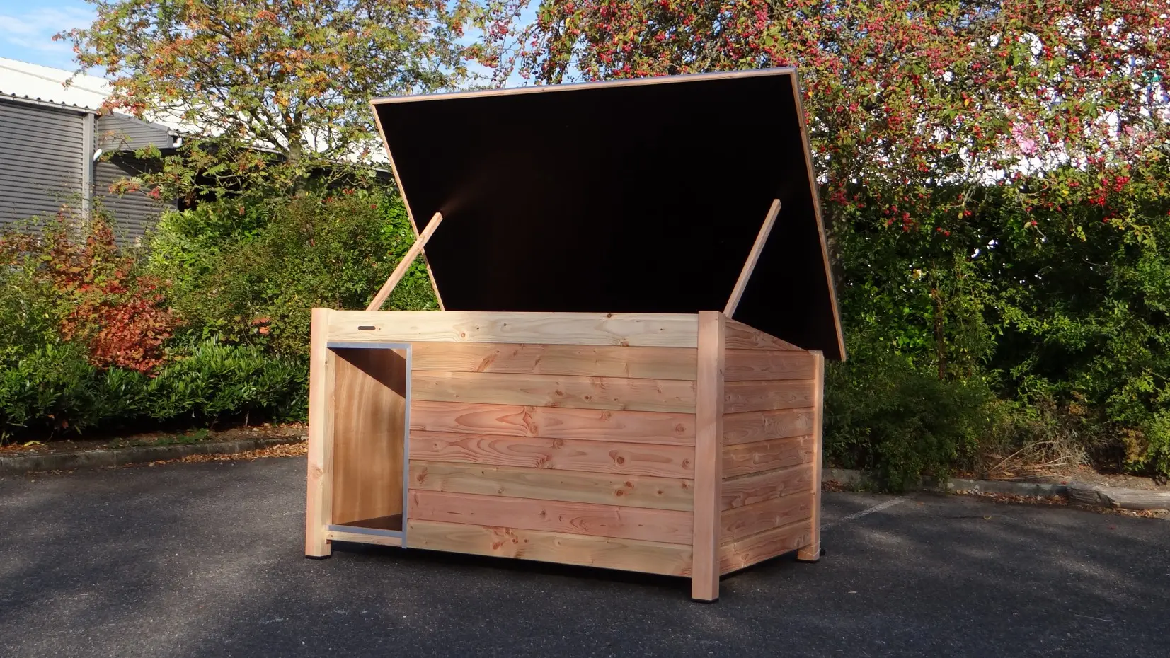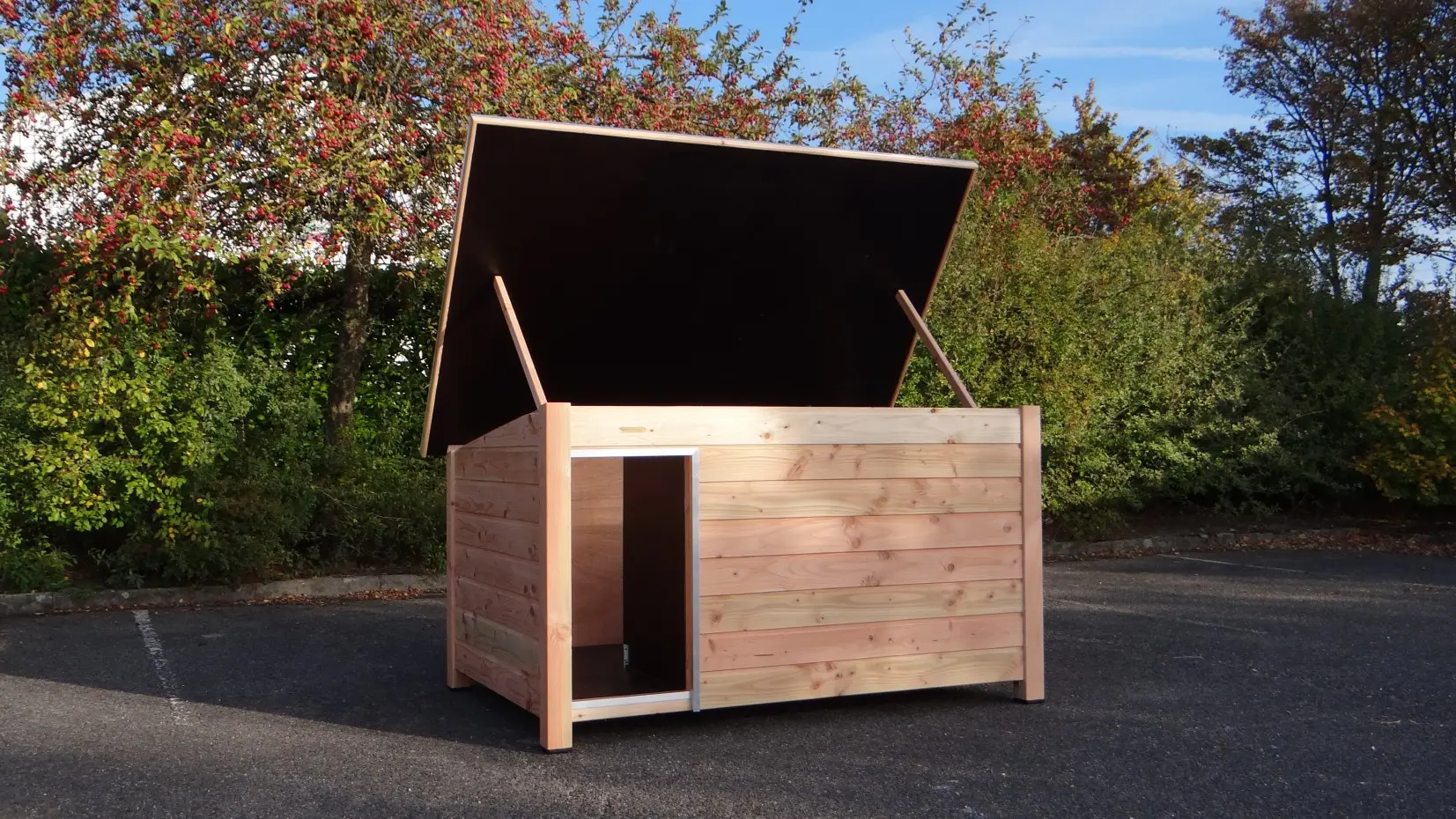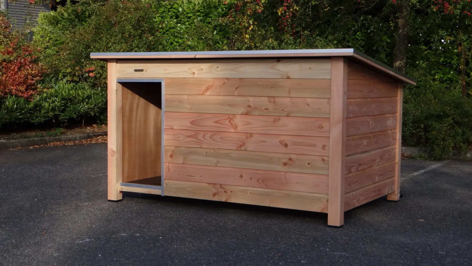 - Es handelt sich um eine hochwertige und gediegene Hundehütte – sehr praktisch, komfortabel und beständig