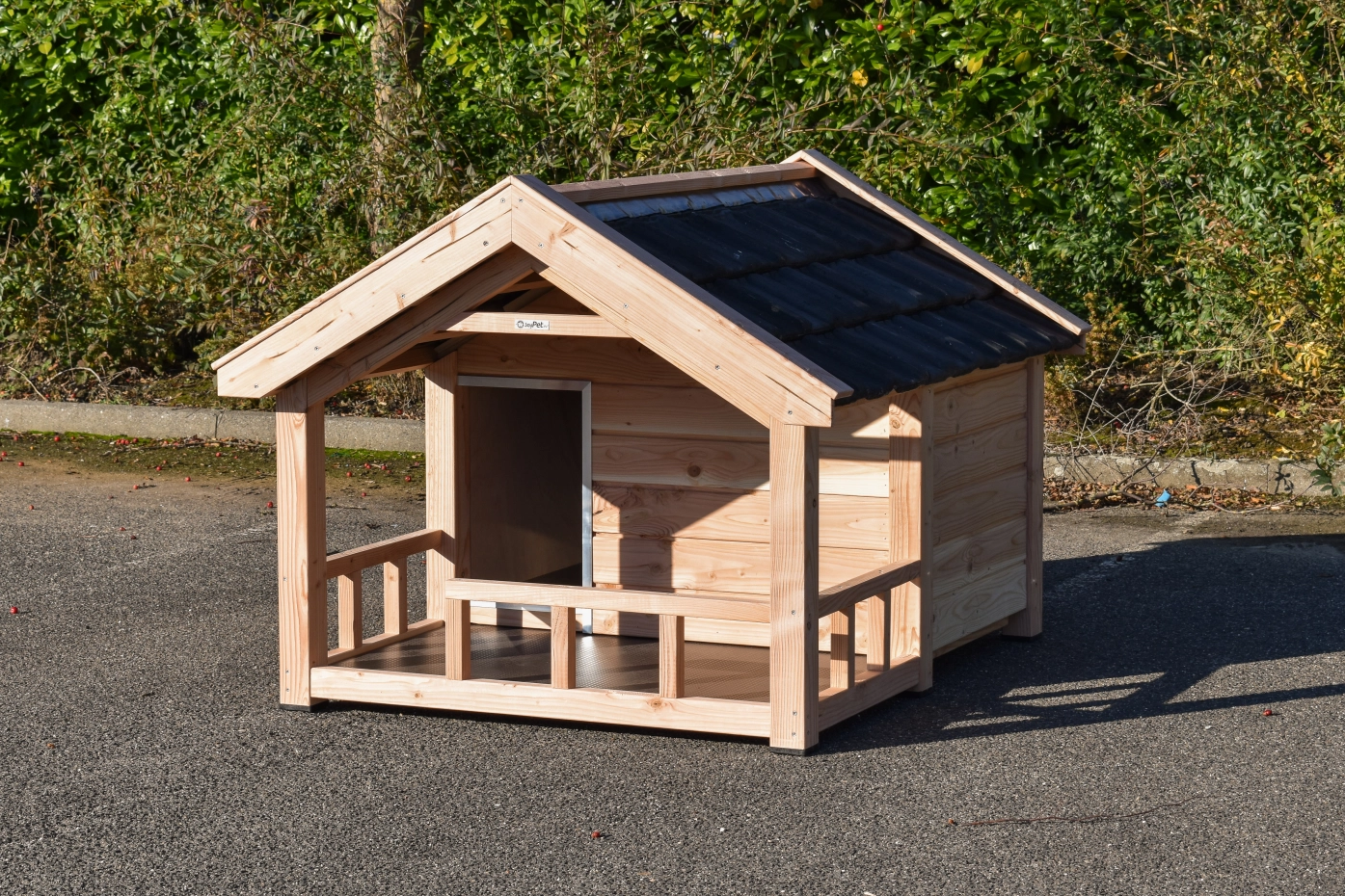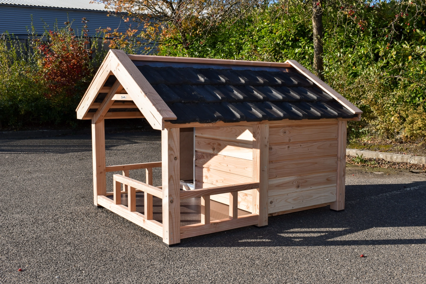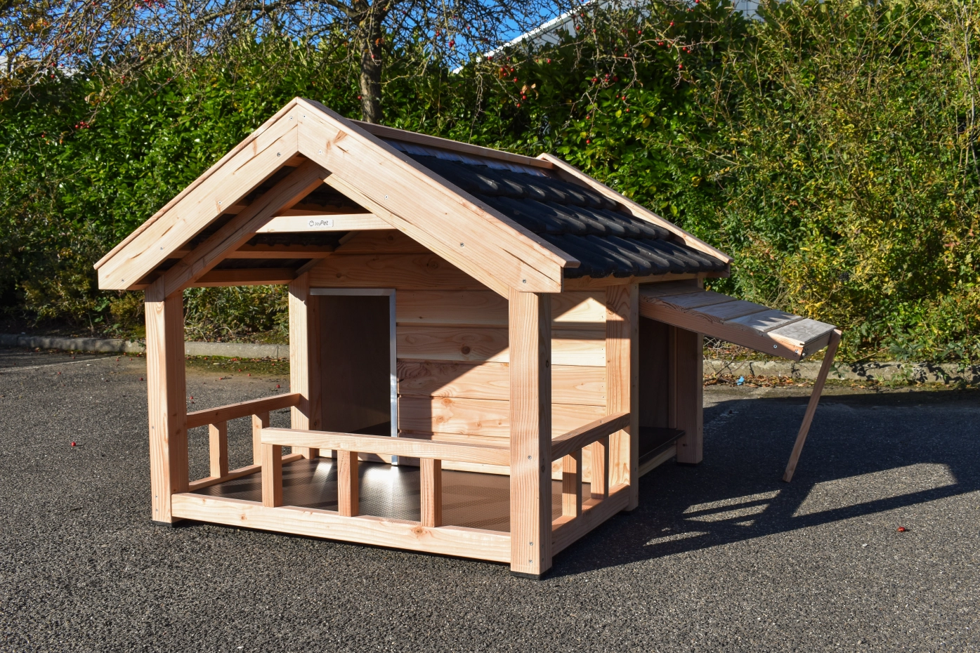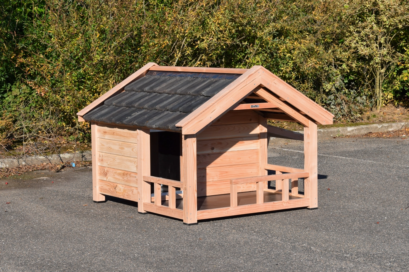 - Es handelt sich um eine hochwertige und gediegene Hundehütte – sehr praktisch, komfortabel und beständig