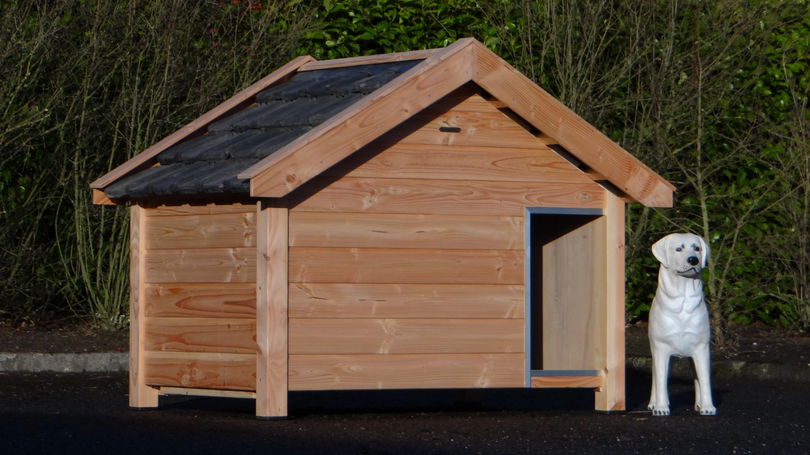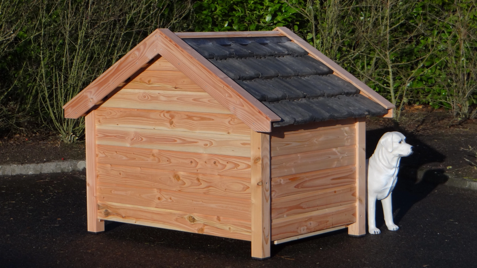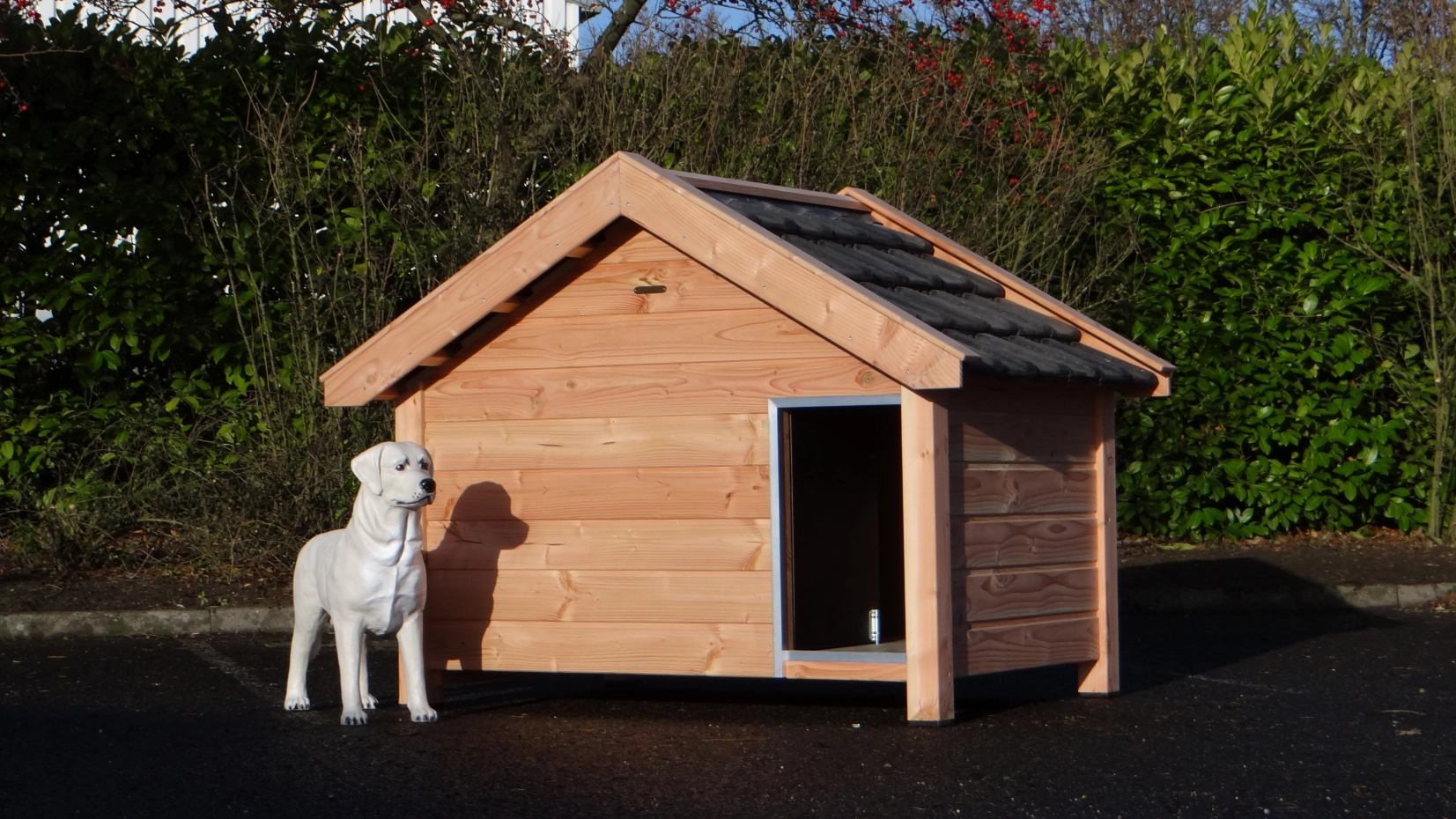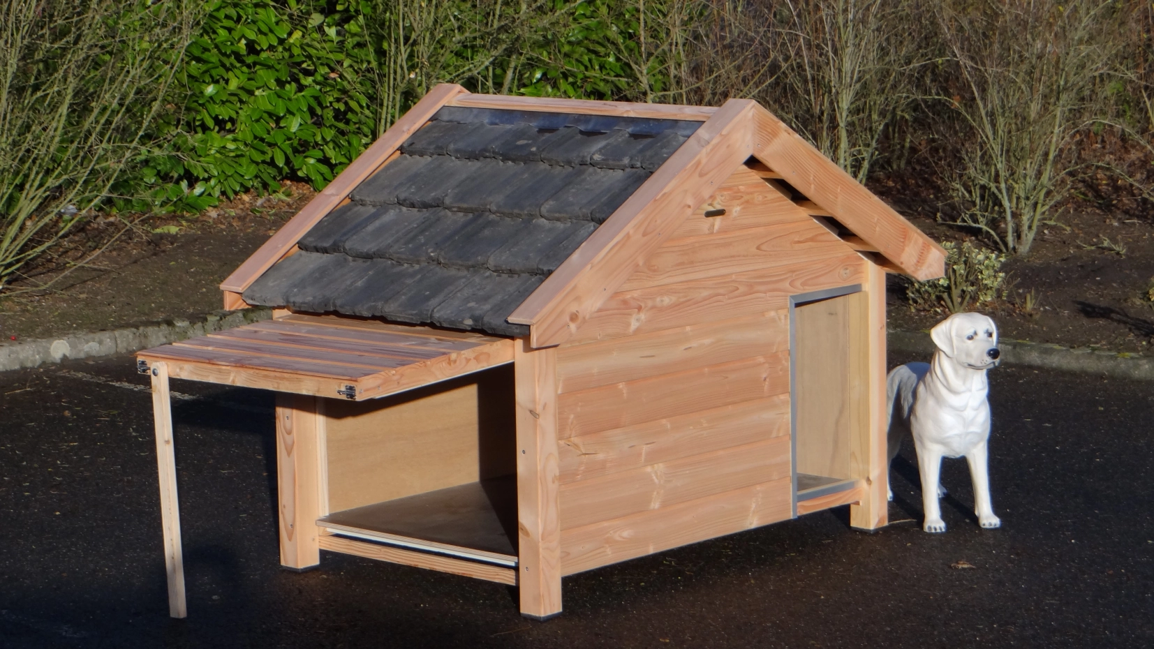- Es handelt sich um eine hochwertige und gediegene Hundehütte – sehr praktisch, komfortabel und beständig