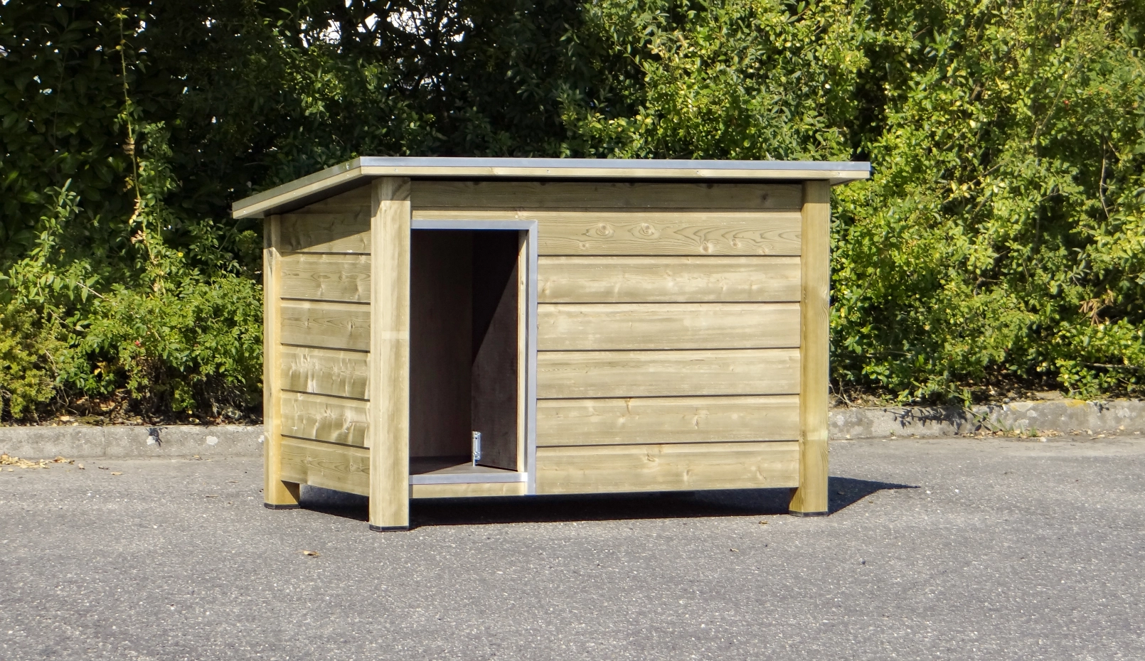 Sie suchen eine große Hundehütte? Mit der Wolf erhalten Sie Qualität, Langlebigkeit und Benutzerfreundlichkeit in einem. Maße: 157×104×100 cm. Das flache Dach aus Betonplex mit Aluminiumkanten und rutschfester Oberfläche lässt sich öffnen und ist leicht zugänglich. Isolierte Wände und Boden halten die Wärme im Inneren. Mit Windschutzklappe, Aluminium-Eingang und auch in Schwarz/Weiß erhältlich.
