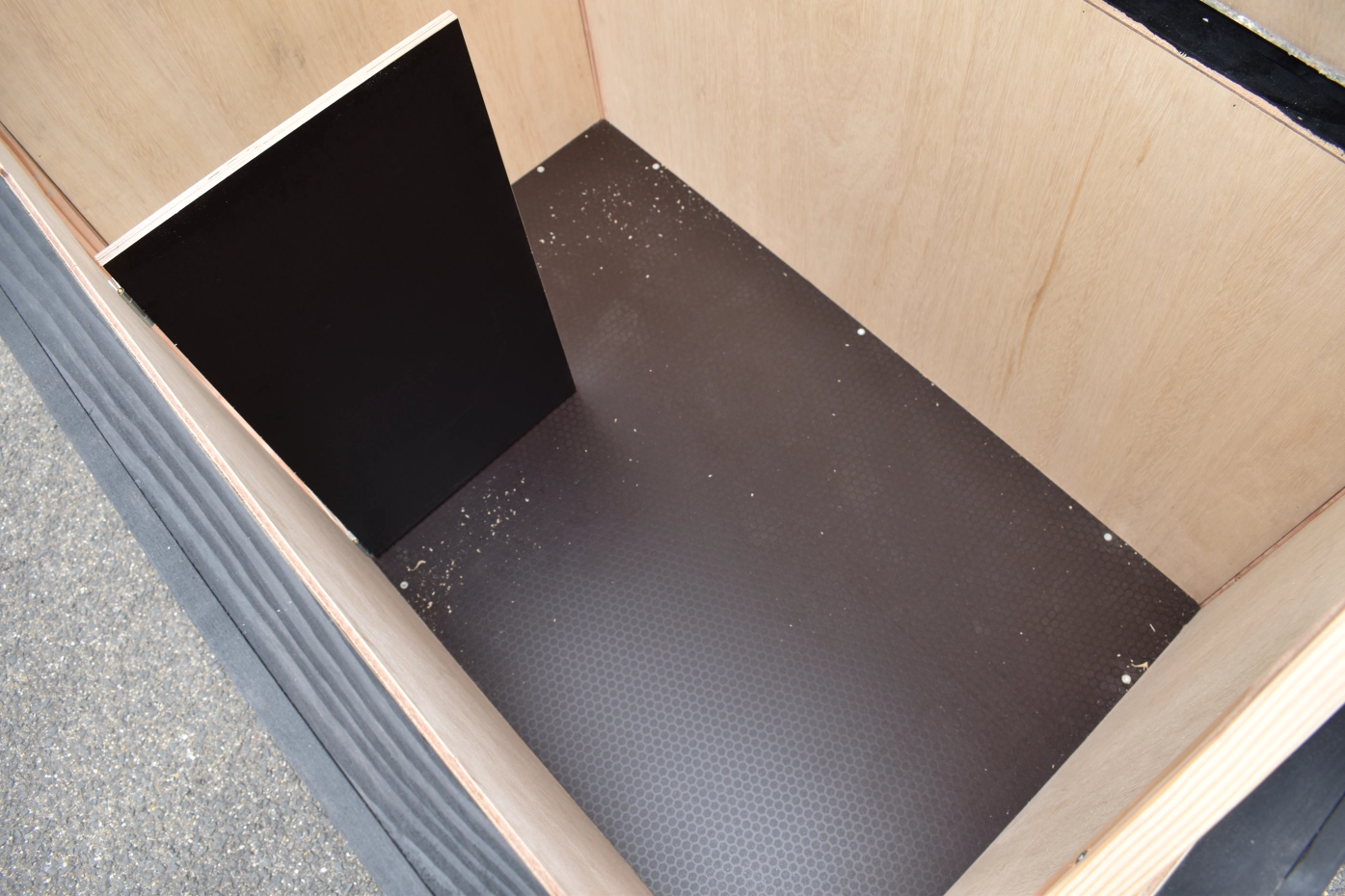 - Das Innere ist mit hartem Sperrholz ausgekleidet.
