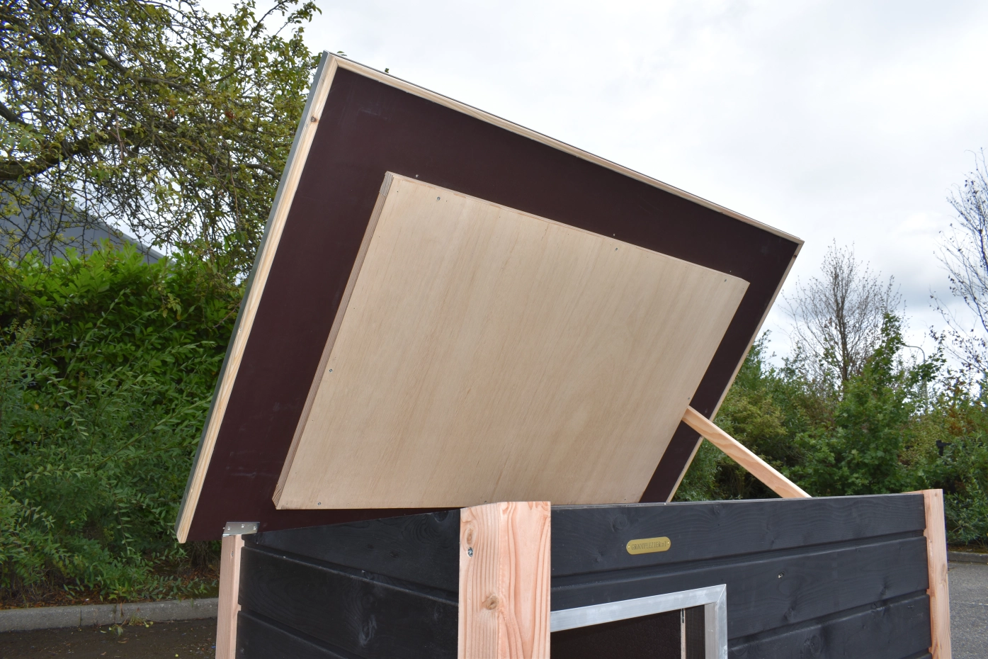 - Es handelt sich um eine hochwertige und gediegene Hundehütte – sehr praktisch, komfortabel und beständig