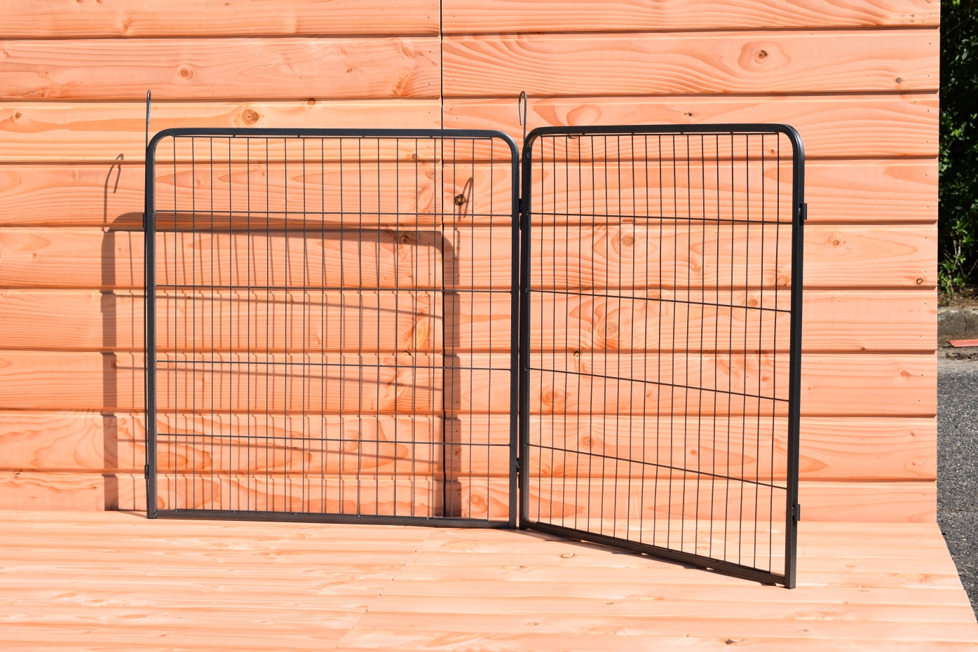 - Der Paneele sind mit einander verbunden durch lange Stiften. Mit der Stiften kann der Auslauf auch in der Grund platziert werden.