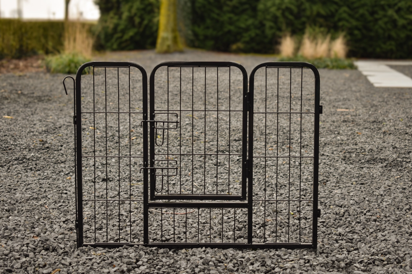 - Der Paneele sind mit einander verbunden durch lange Stiften. Mit der Stiften kann der Auslauf auch in der Grund platziert werden.